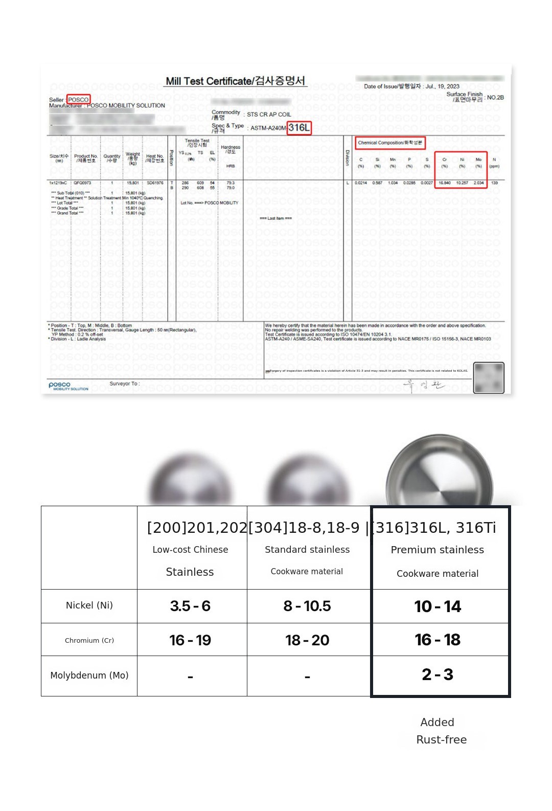 POSCO 316 stainless steel chosen by brands in the 500,000 KRW range.