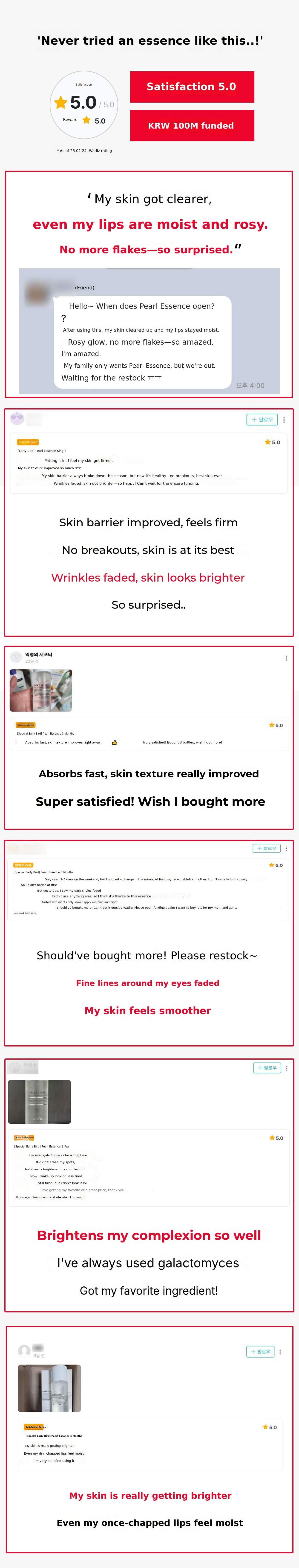 When introducing the maker, I usually prefer to write plainly without fancy designs, but today I feel especially sentimental. Praying that the pearl essence will receive as much love from supporters as the ampoule and cream.
