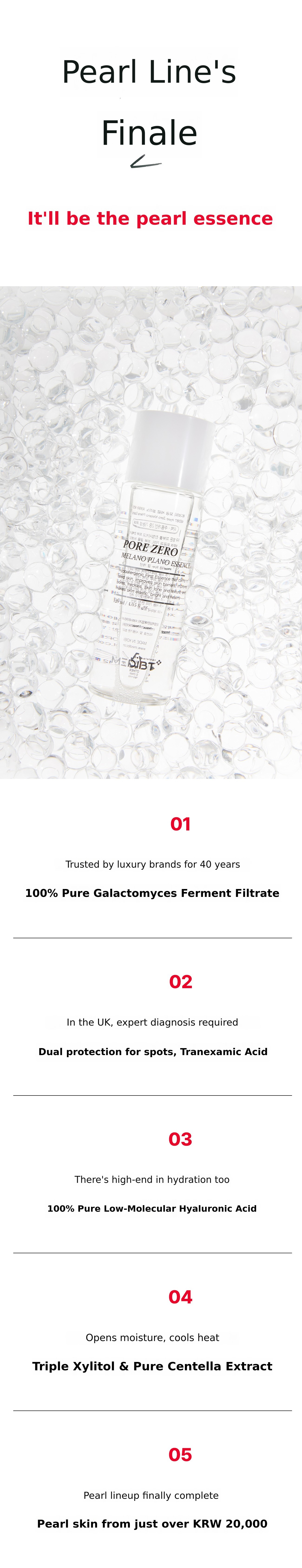 The key ingredients are fermented, so the particles are very small, even smaller than the Pearl Ampoule we introduced before. If you are already using the Pearl Ampoule, please use the Pearl Essence first so that the molecules can gradually increase in size and layer onto your skin.