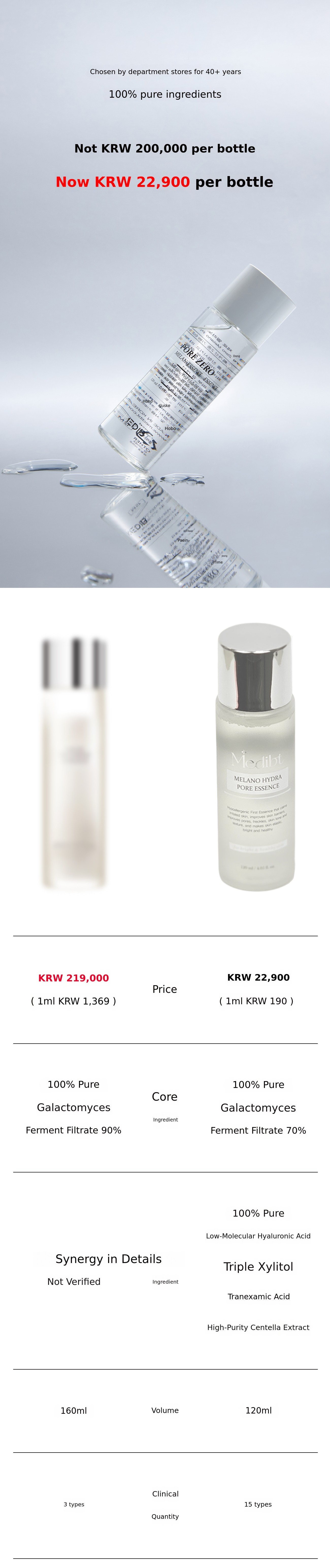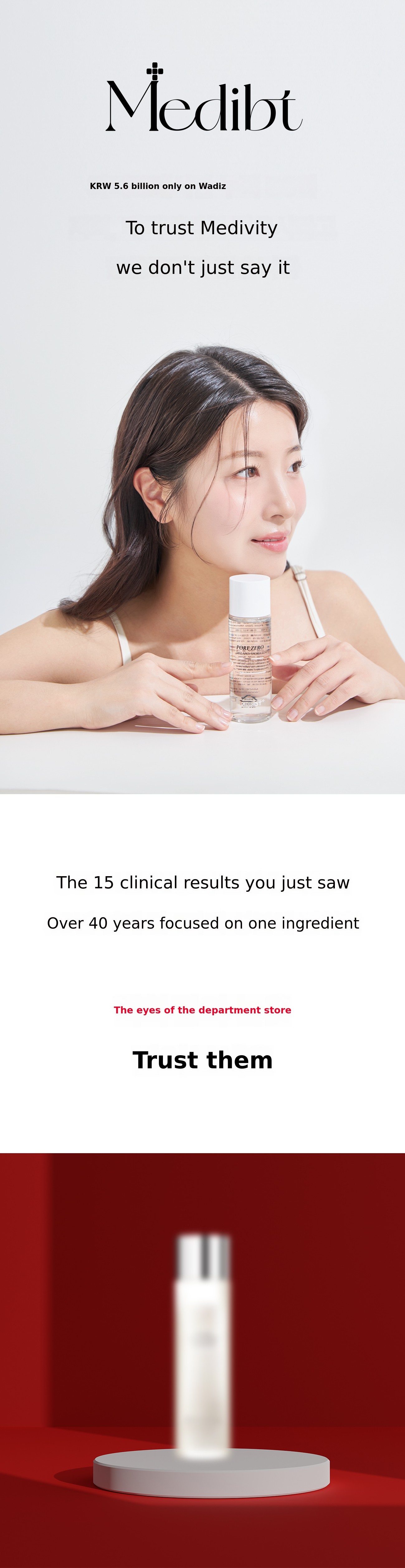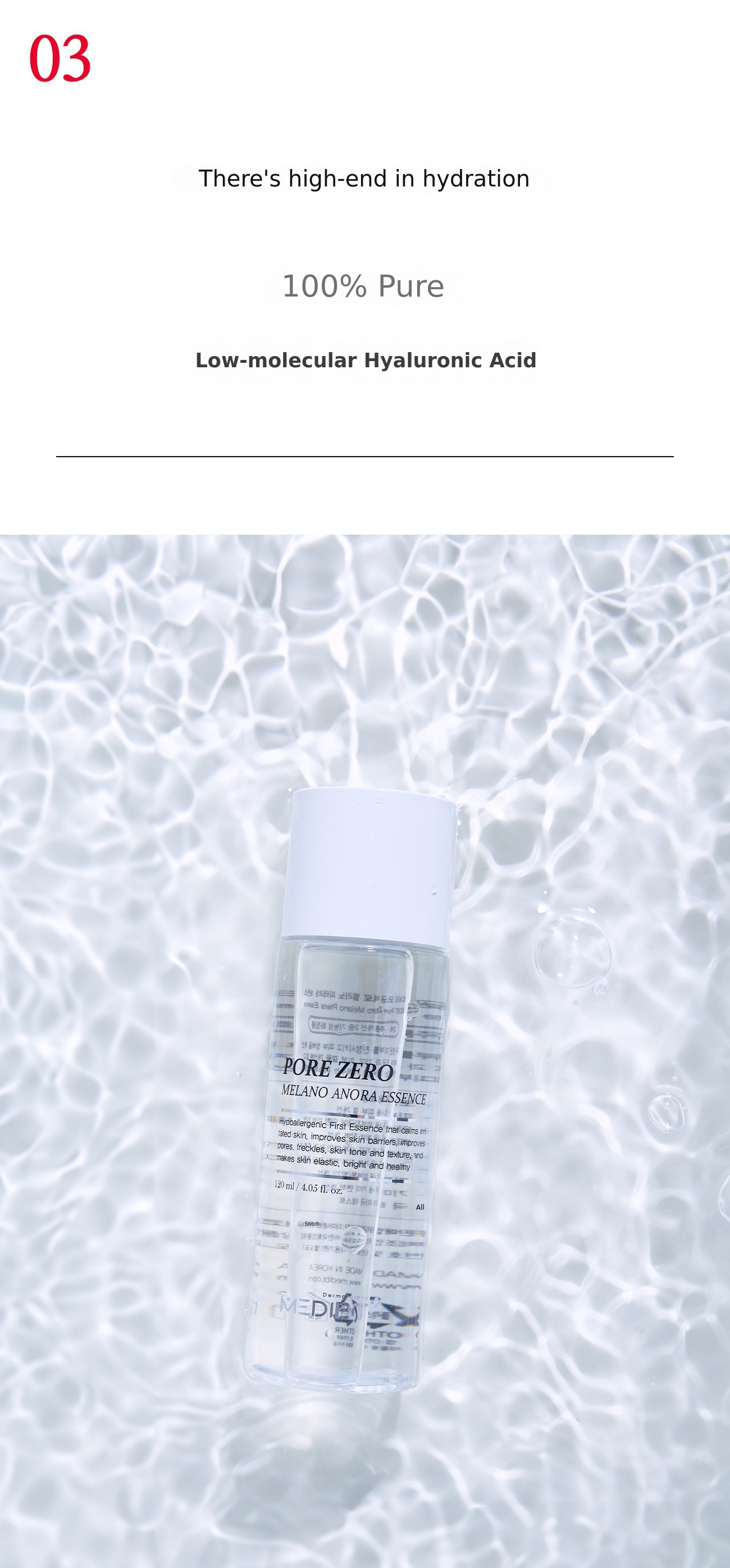 If we can obtain ingredients with 100% purity, Mediviti has always chosen 100% purity regardless of how much the cost increases. High concentration of high-efficacy ingredients. It's an essential condition to create visible changes in the skin.