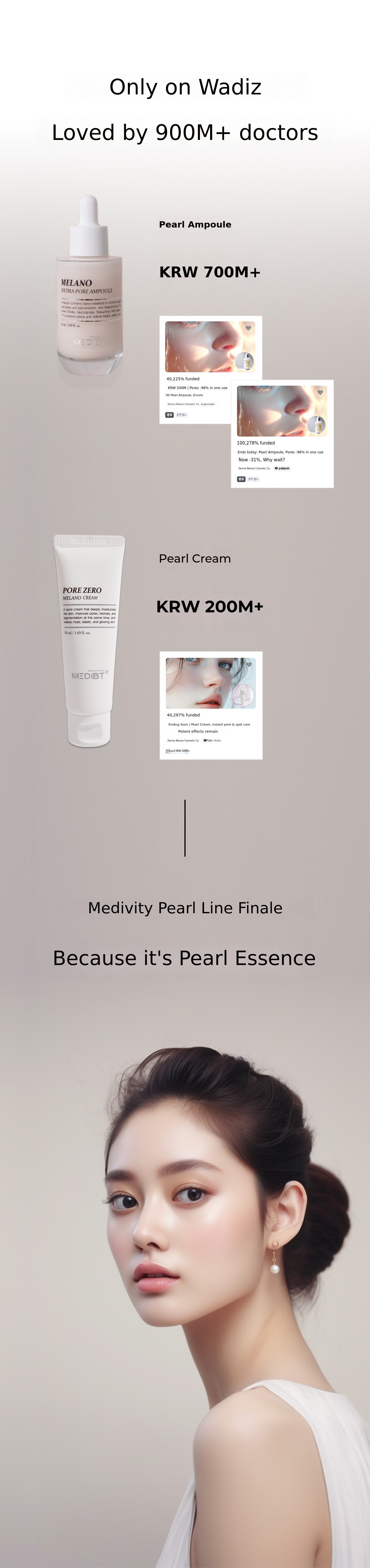 Mediviti achieved over 5 billion KRW in sales on Wadiz alone. At the center of it all was the Pearl Ampoule.