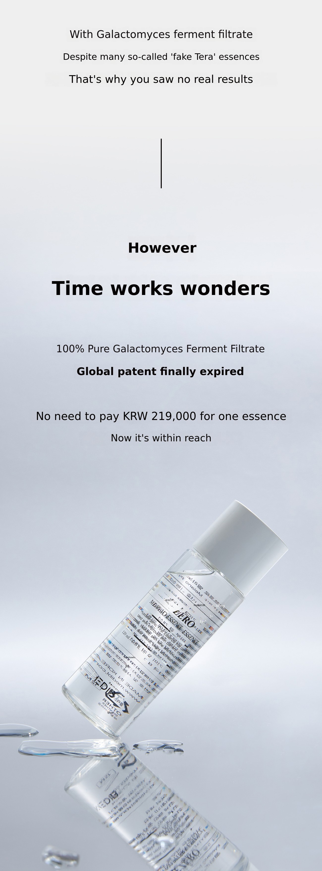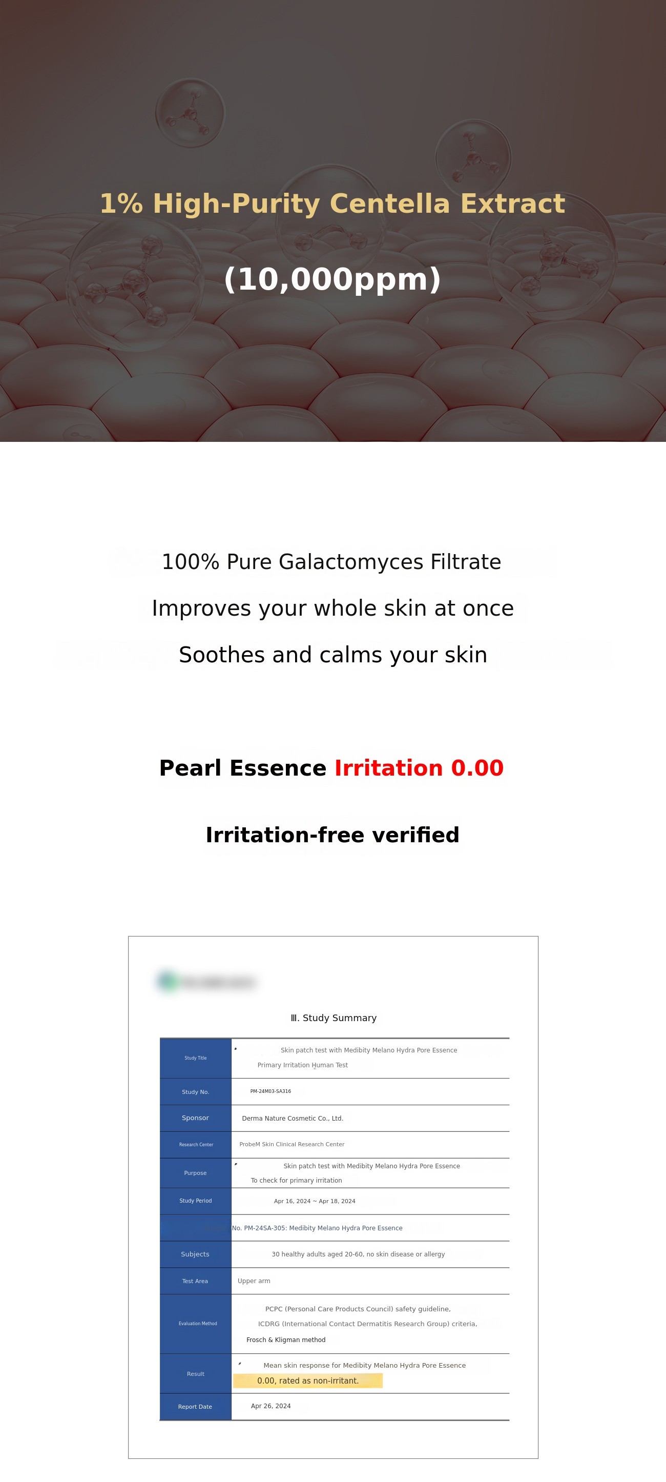 When conducting human application tests, the same as what we send to our supporters,Exactly the same product Because it must proceed as such,(If we deceive you on this, it's a legal violation and we go to jail!) Just as luxury department store essences do, the pearl essence you receive will contain70% Galactomyces Ferment Filtrate with not a single drop of water mixed in, will be included.