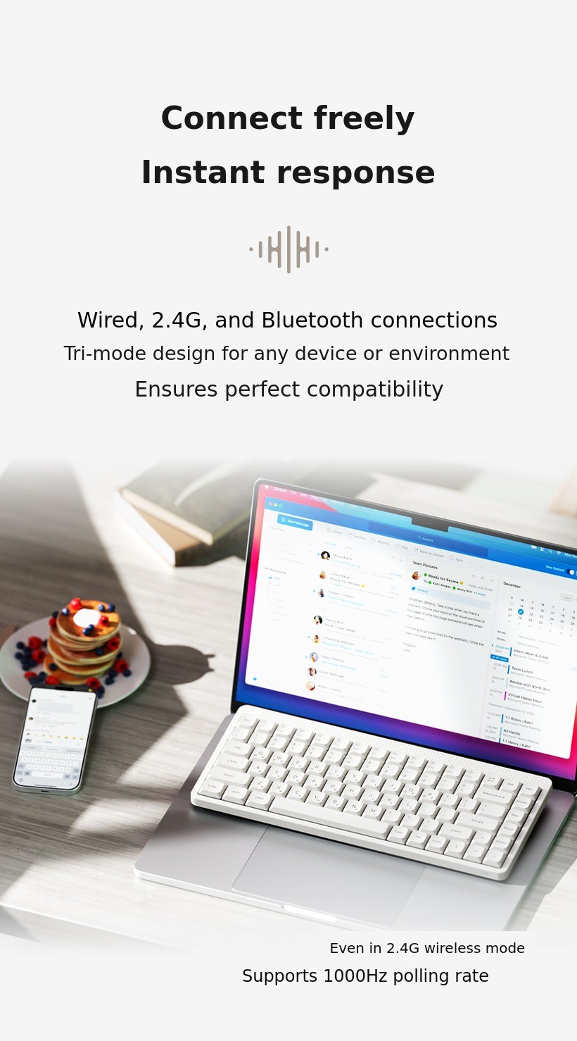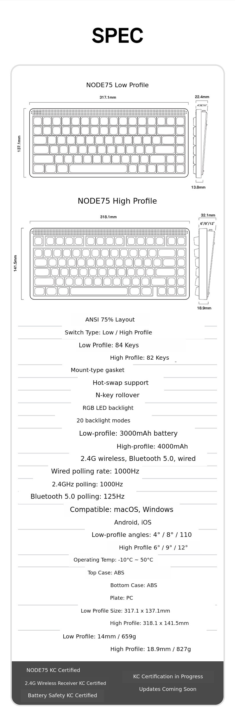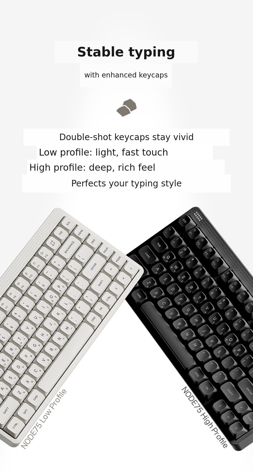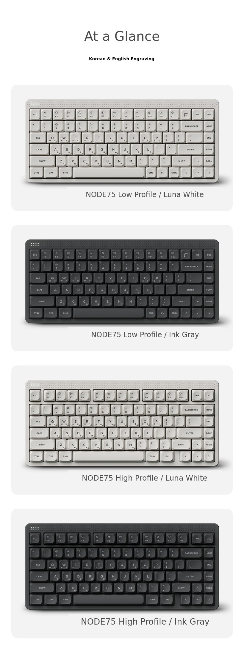 The NODE series supports Bluetooth, 2.4g dongle, and wired modes. Therefore, users can freely enjoy keyboard typing by selecting the connection mode that suits their environment.