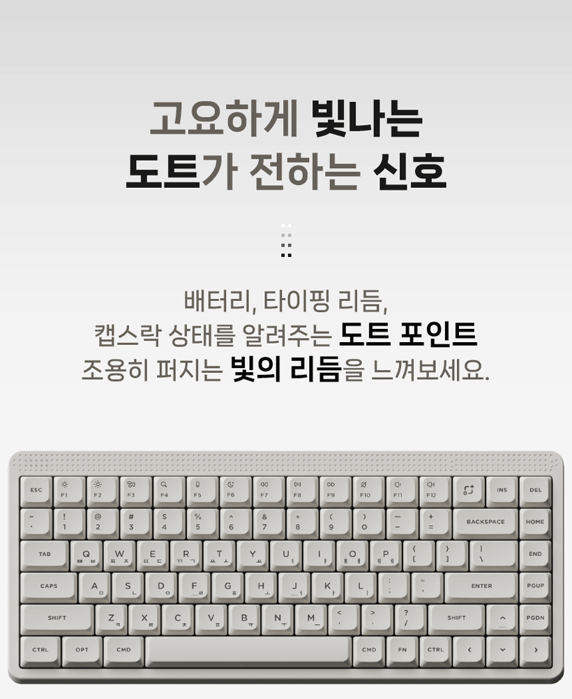 The basic keyboard layout is the same as Windows/Mac, but you can switch modes with the toggle button to change to a Windows/Mac OS environment. Therefore, it can be used with devices that support wired connections, such as MacBook, various global laptop brands, and desktops. Of course, it can also be connected to tablets or smartphones via Bluetooth.