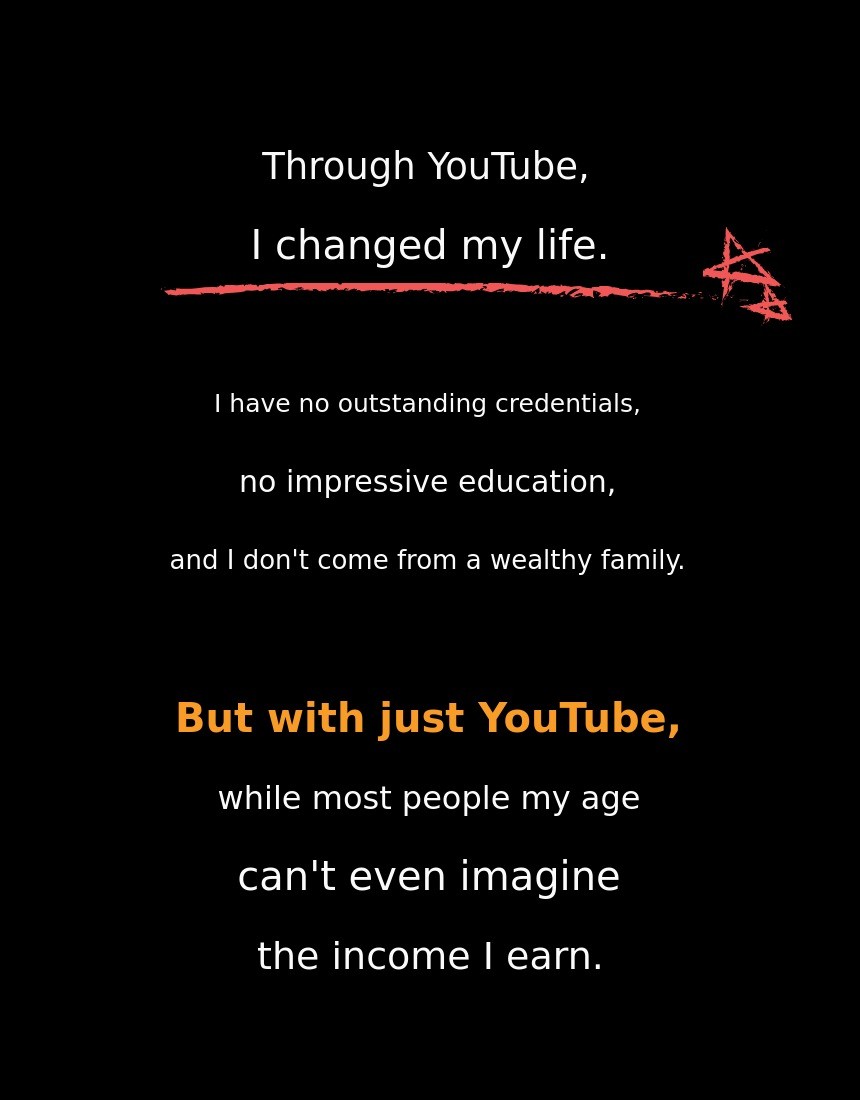 My family was not particularly well-off, and I was neither a top student nor especially talented, but I changed my life with just YouTube.