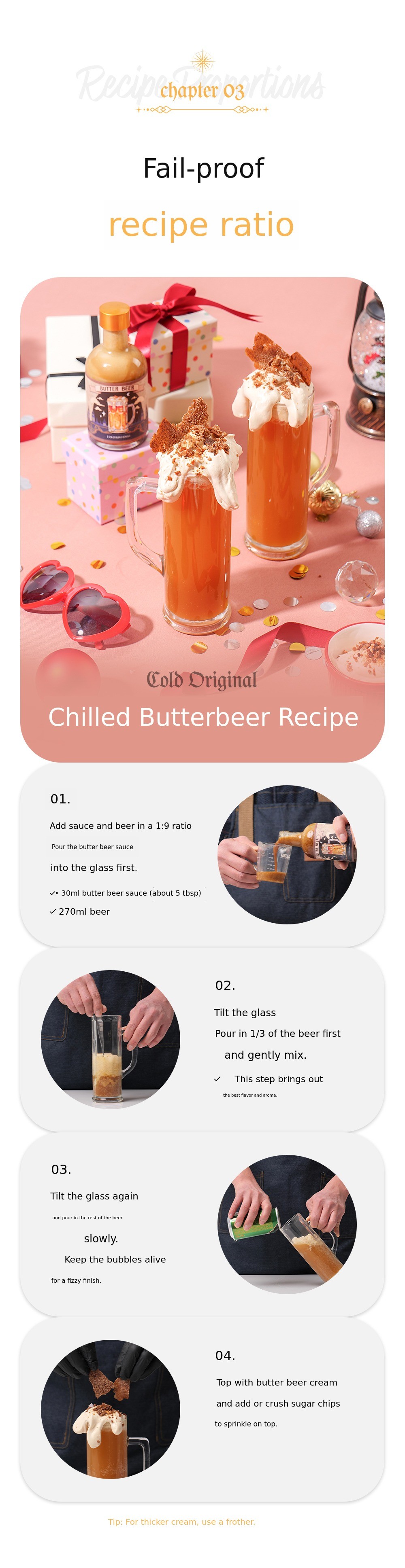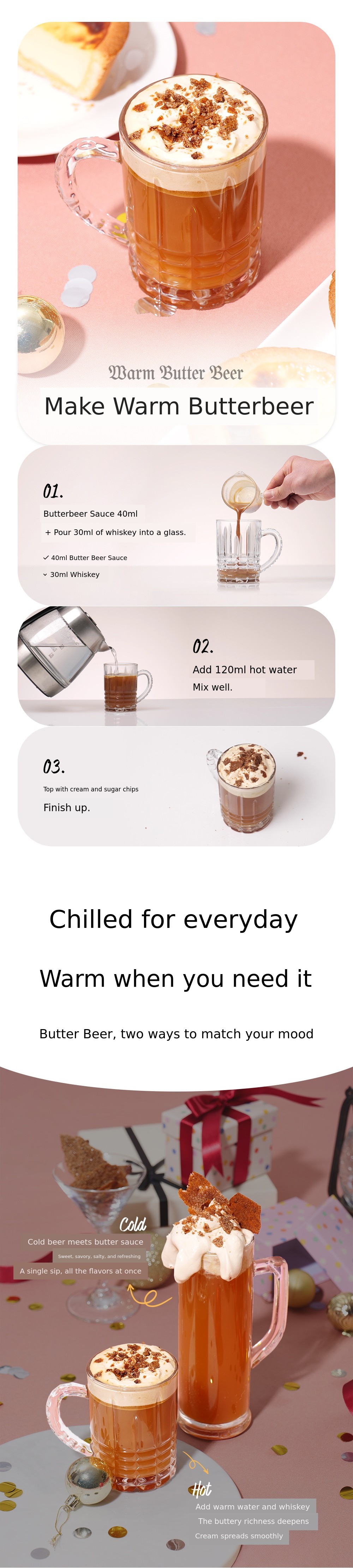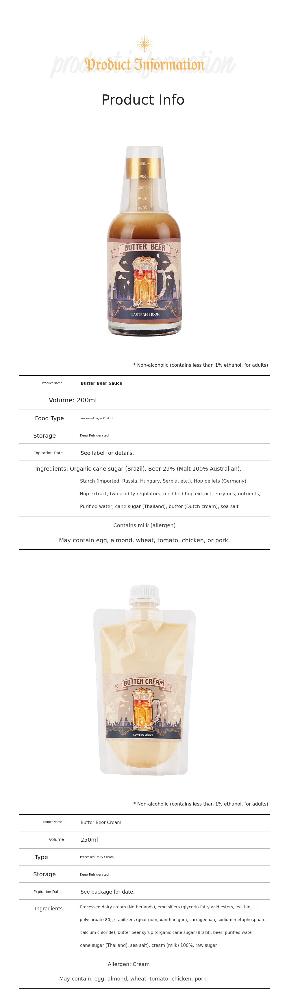 A. Over time, the butter beer sauce and cream may separate. B. Gently knead and mix before use.