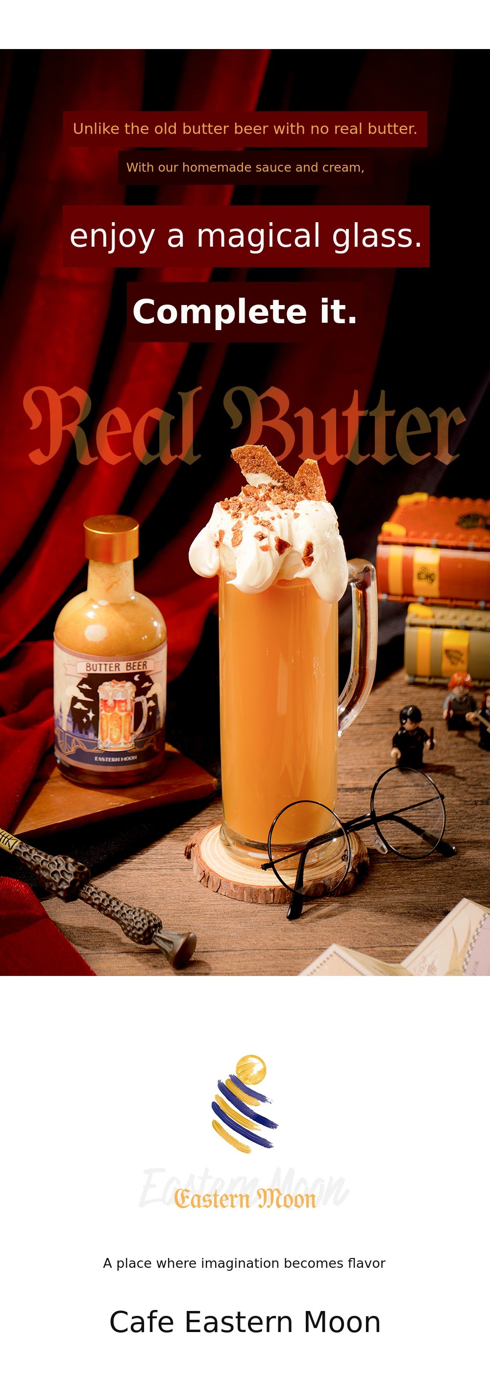 Butter beer began from the desire to one day create that sweet and creamy drink I had only seen in books as a child. The time spent testing various recipes alone in the café kitchen led to what is now our signature menu.