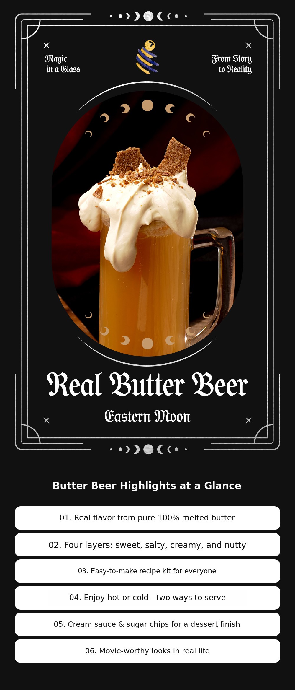Although I am a bit nervous, I hope that by launching here for the first time, more people will get to experience Eastern Moon's butter beer firsthand.