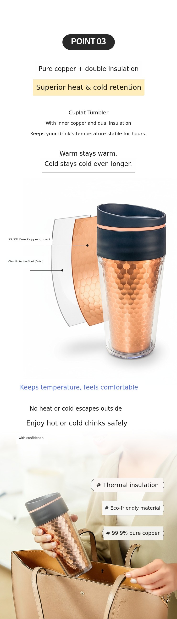 1. ๐ฅค World's First Pure Copper Tumbler - Premium tumbler made with royal-selected copper material 2. ๐ฅ Excellent Heat Retention and Antibacterial - Enhances hygiene and daily elegance with superior warmth and antibacterial power 3. ๐ Discounts and Gift Sets - Includes premium gift box, discounts and gifts for multi-set purchases