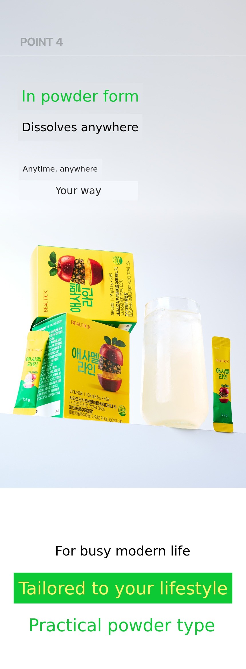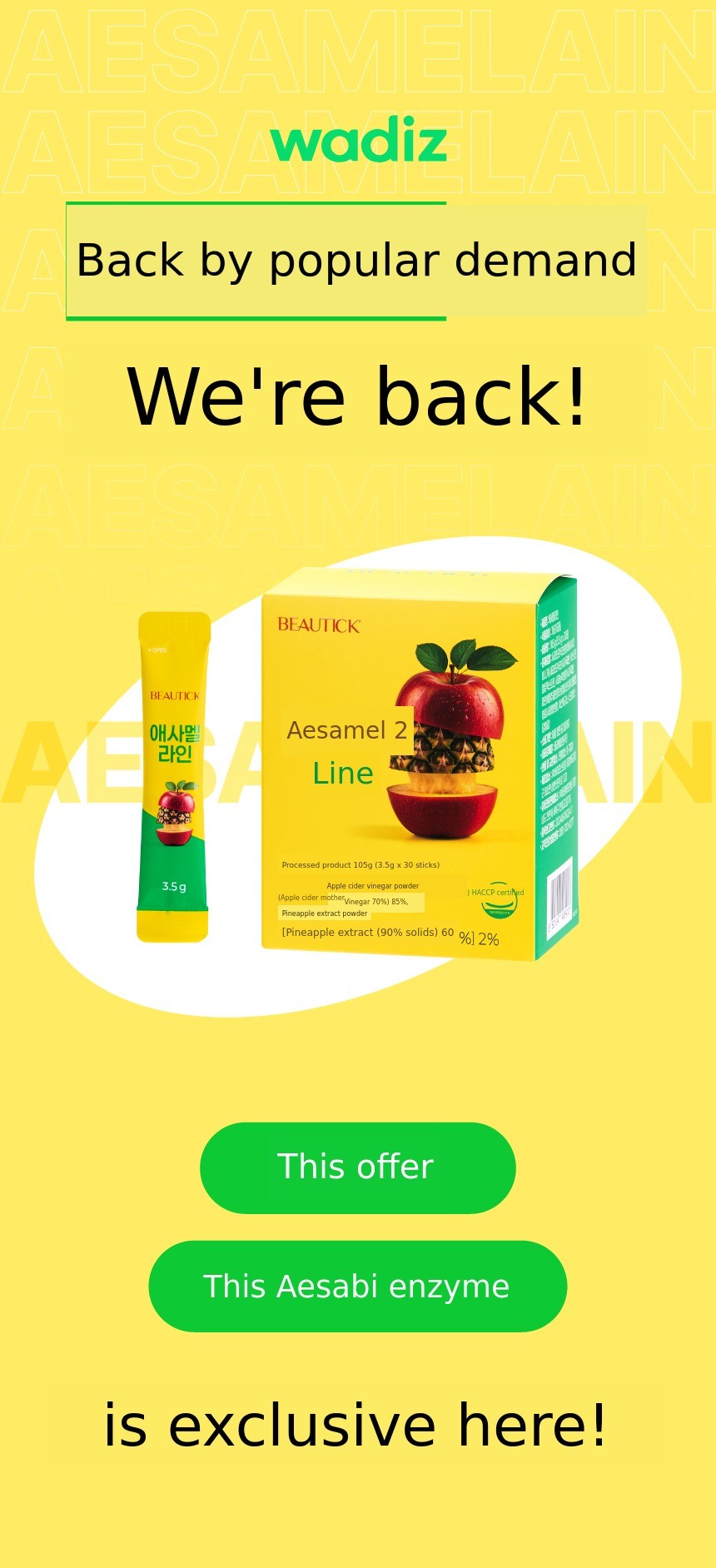 With 2,975mg of Aesabi for the maximum content and 0g of sugar, Aesamelain can be enjoyed with peace of mind, exclusively for the Wadiz family.