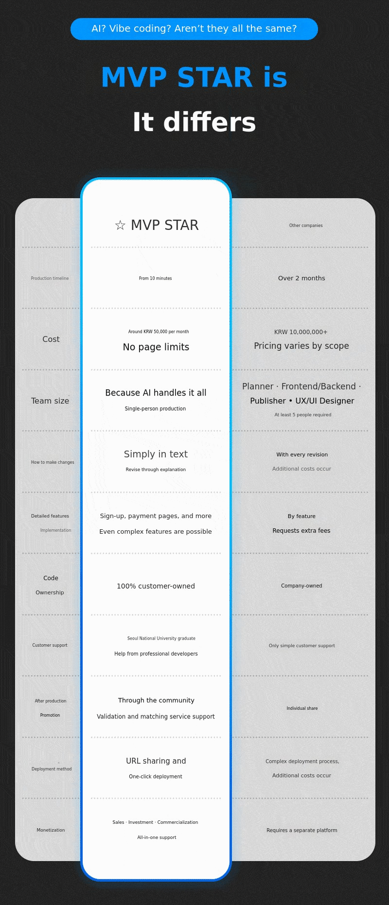 There are many vibe codingβrelated tools and AI coding assistants on the market, but "mvpstar" goes beyond being a simple code generation tool.