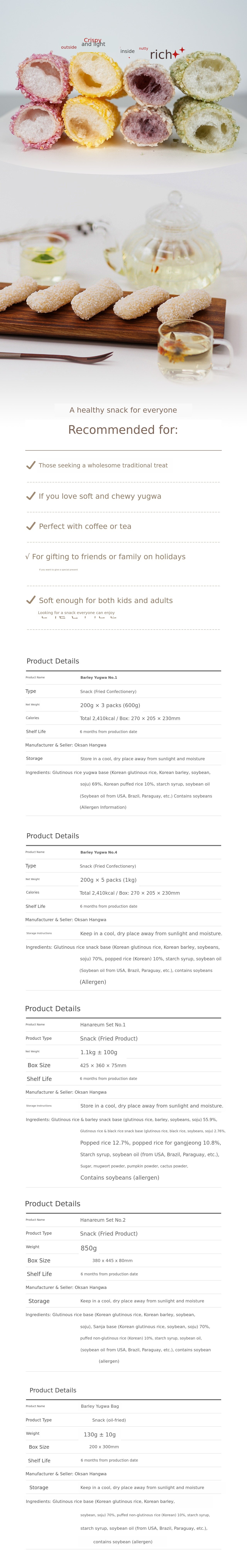 An option pack of 'Barley Yugwa Bag' perfect for light enjoyment, is added,