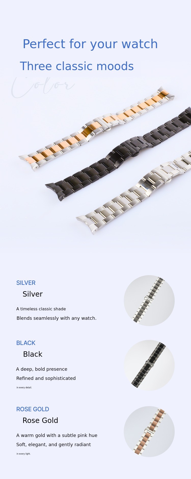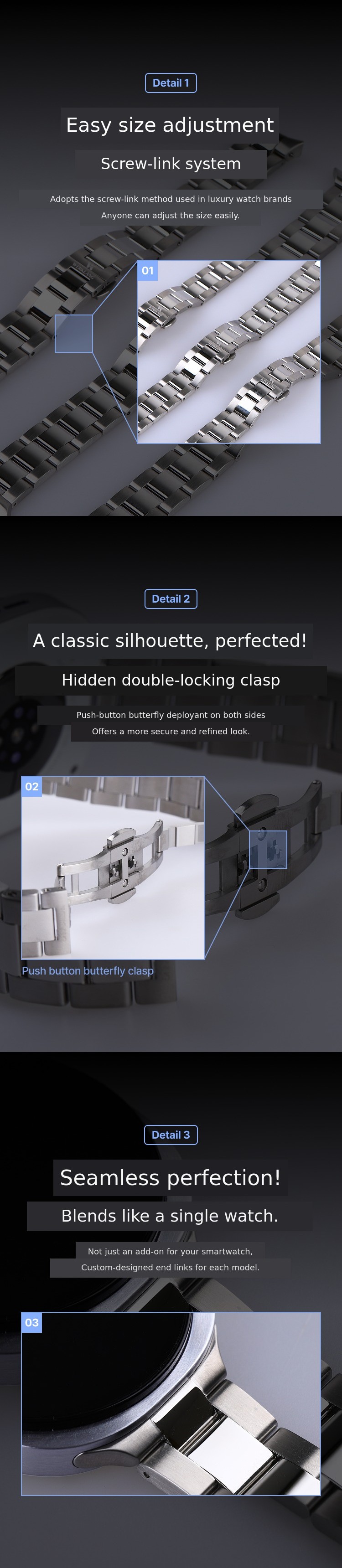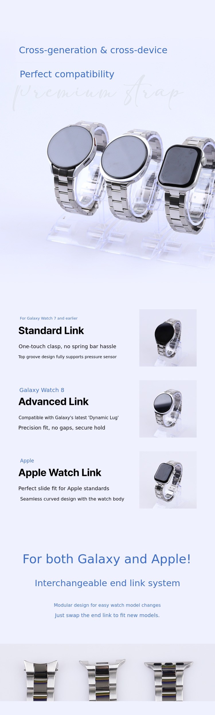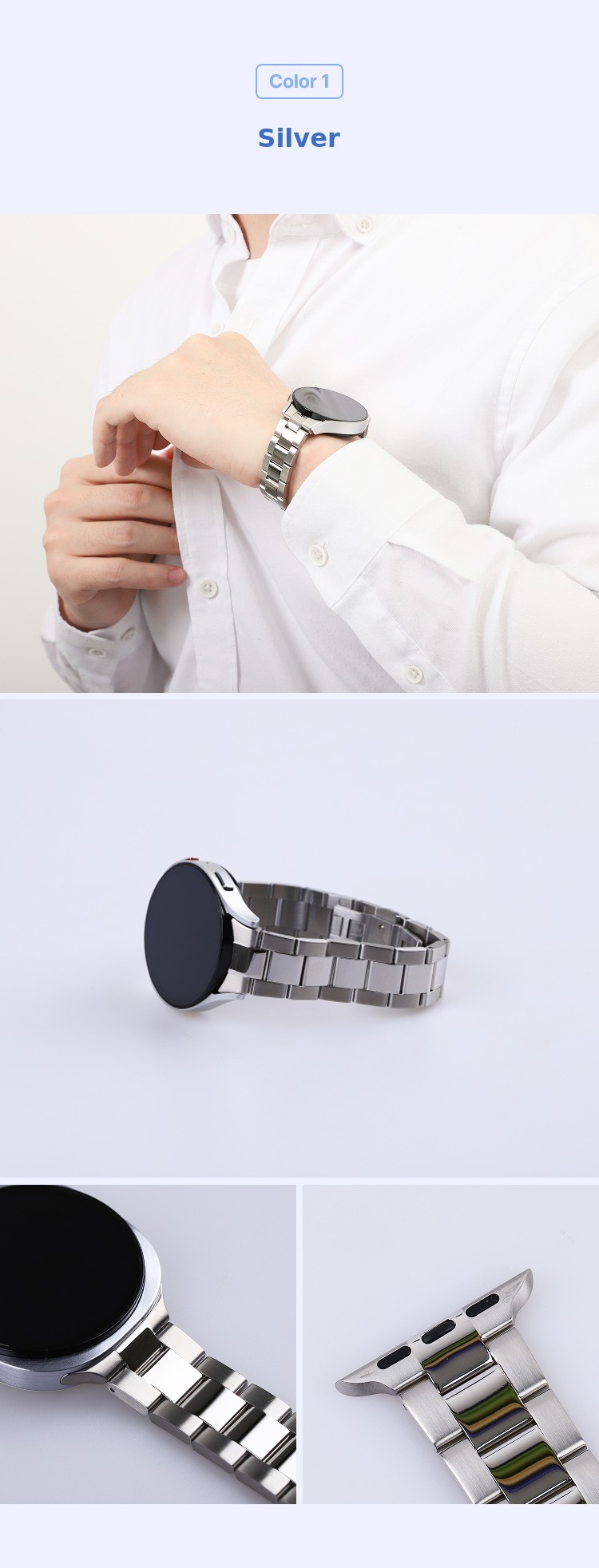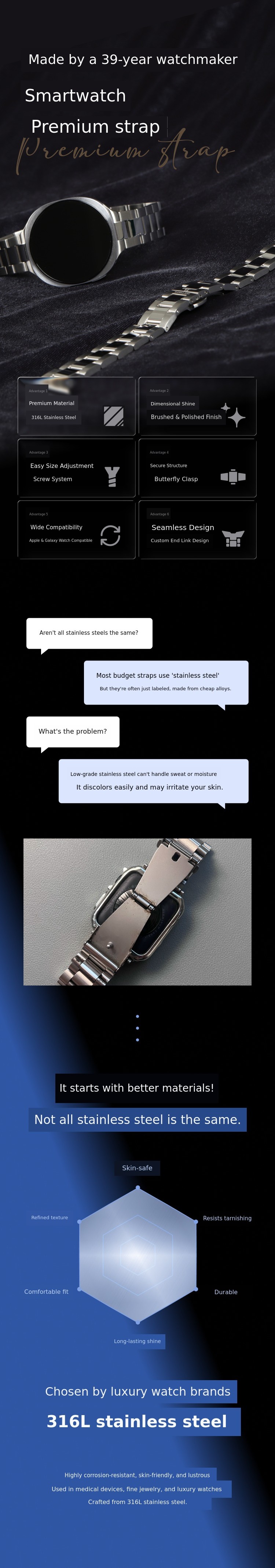 1. ⌚ Premium Metal Strap - High-end watch band compatible with Apple and Galaxy watches 2. ✨ Luxury Watch Feel - Adds elegant design and durability to smartwatches