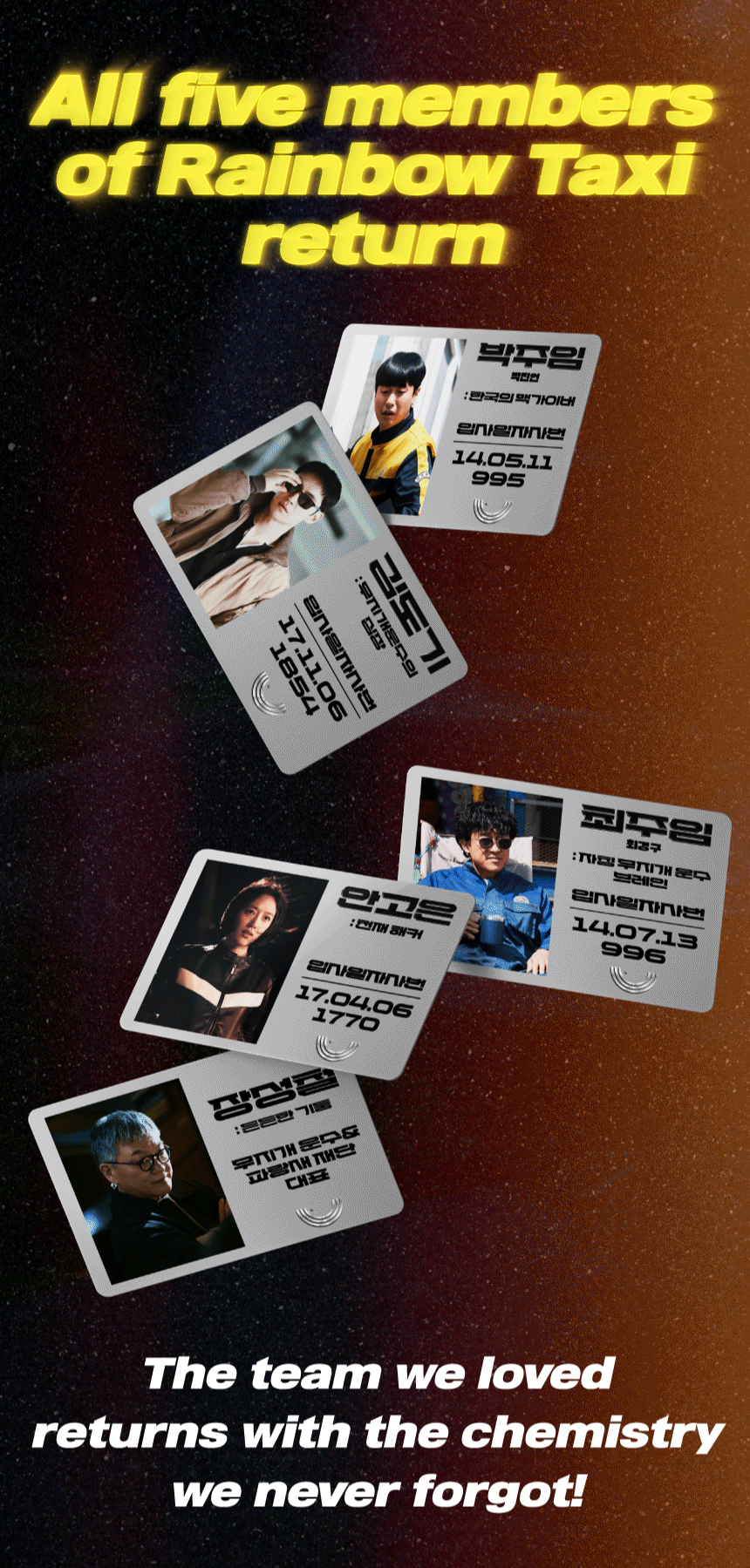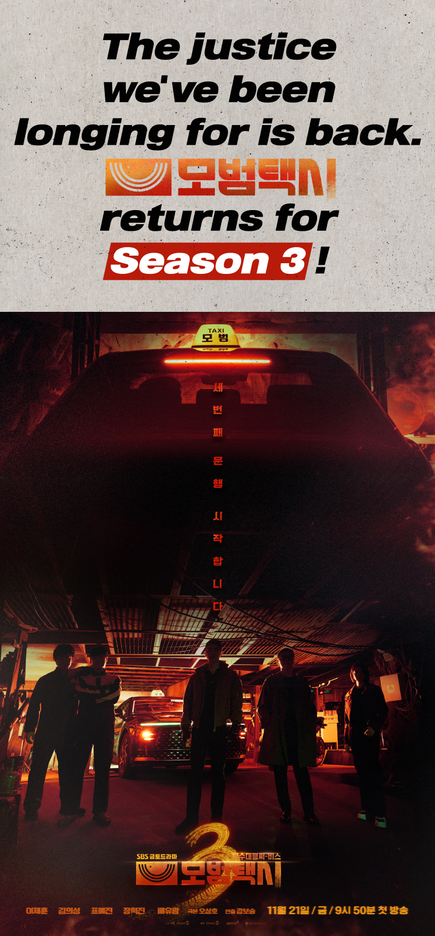 This project started from the universe of the SBS drama, in which the taxi company Rainbow Transport and taxi driver Kim Do-gi complete revenge on behalf of wronged victims with the slogan, "A society where justice has gone missingโ€”one phone call is all it takes." SBS drama <Taxi Driver 3>.