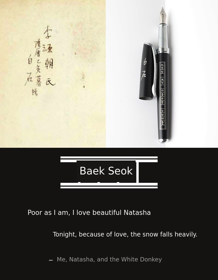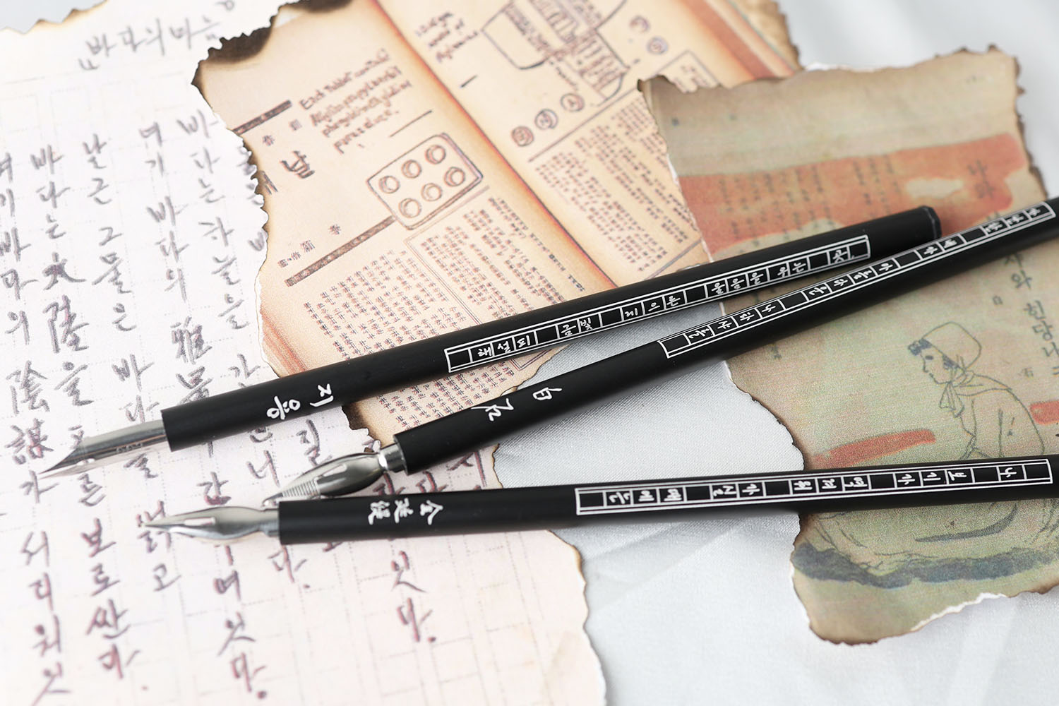 *For the Baek Seok, Jeong Ji-yong, and Kim So-wol fountain pens/pen holders, all fonts except for the signature on the cap have been reconstructed using the GS Independent Typeface Yun Dong-ju 'Night of Counting Stars'.