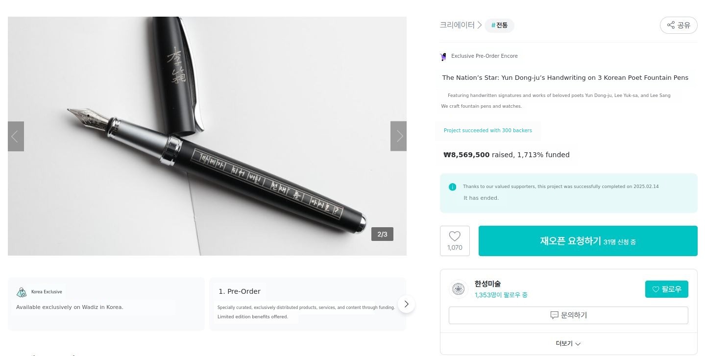 Hansung Art has presented more than 30 projects on Wadiz so far.