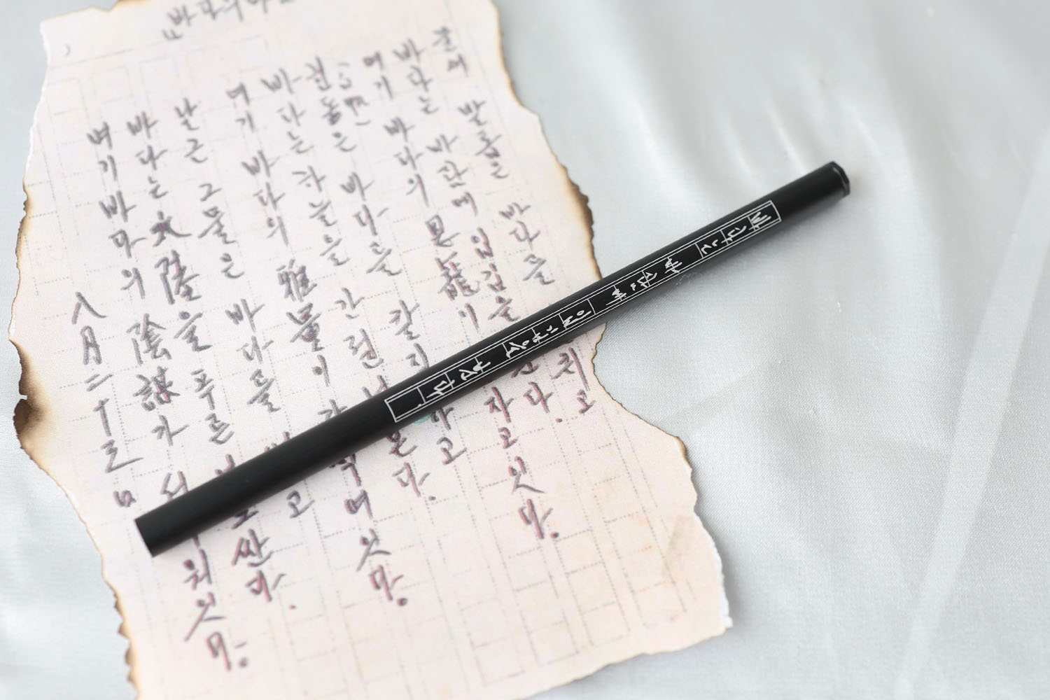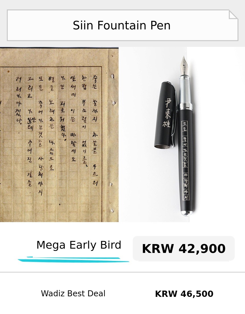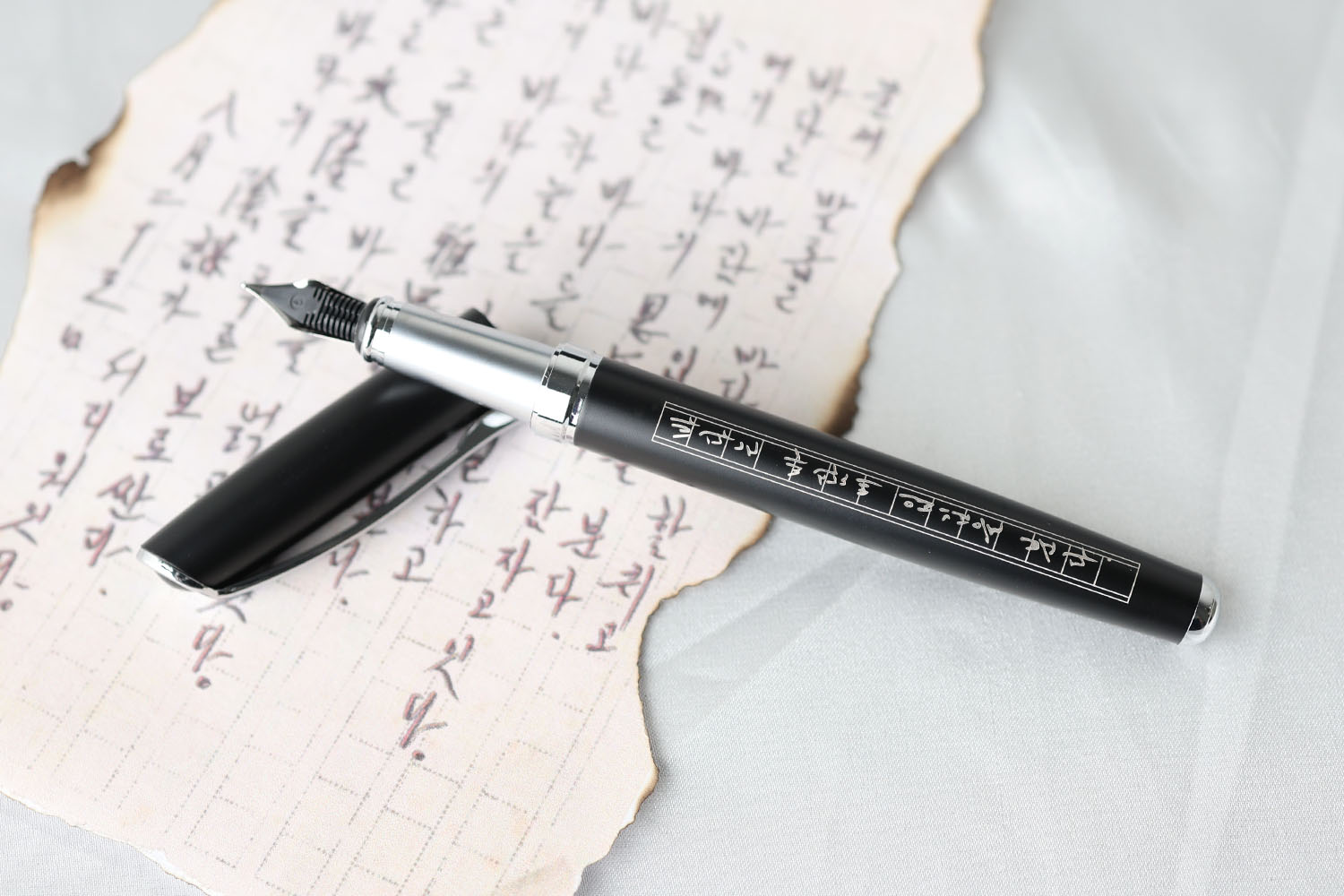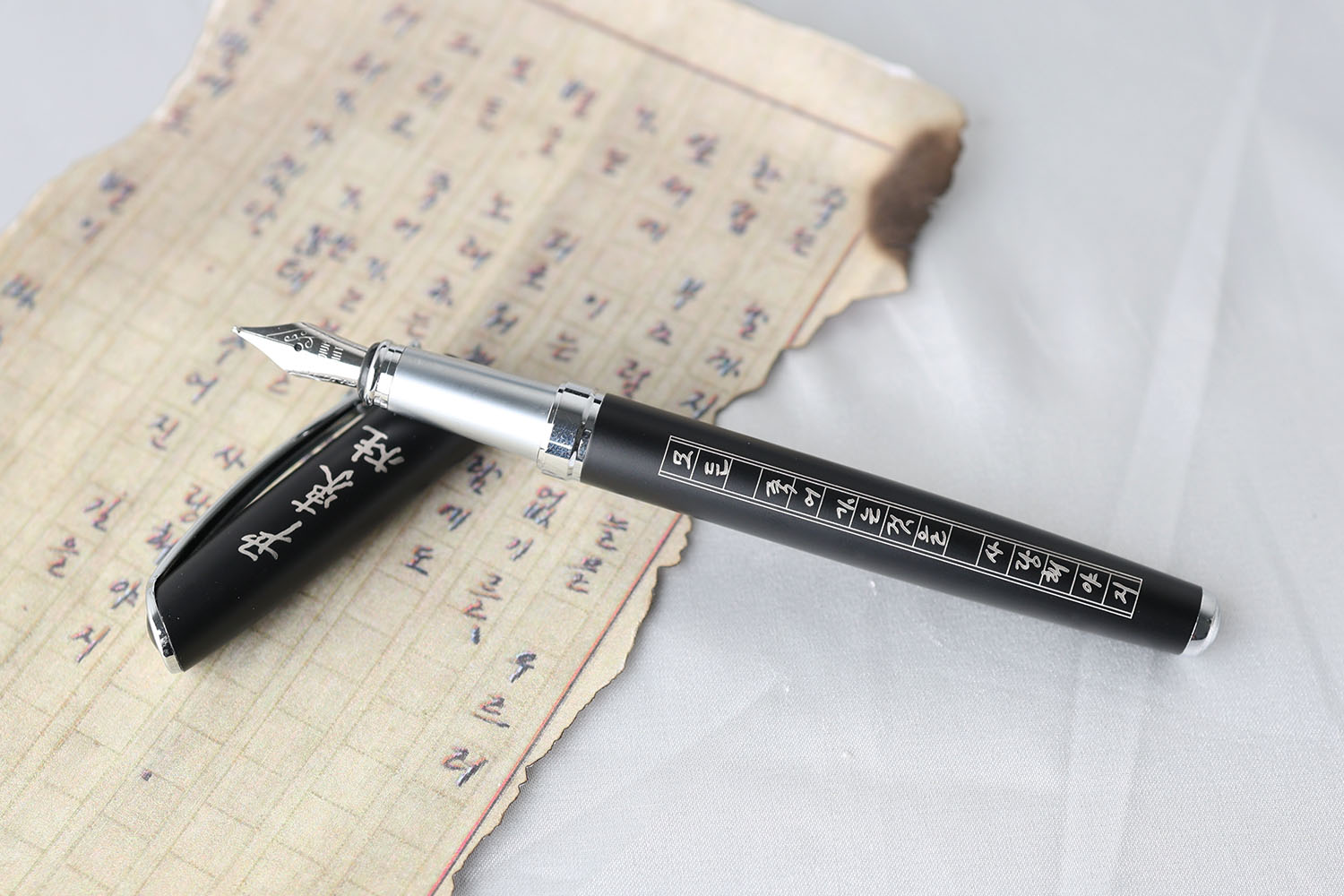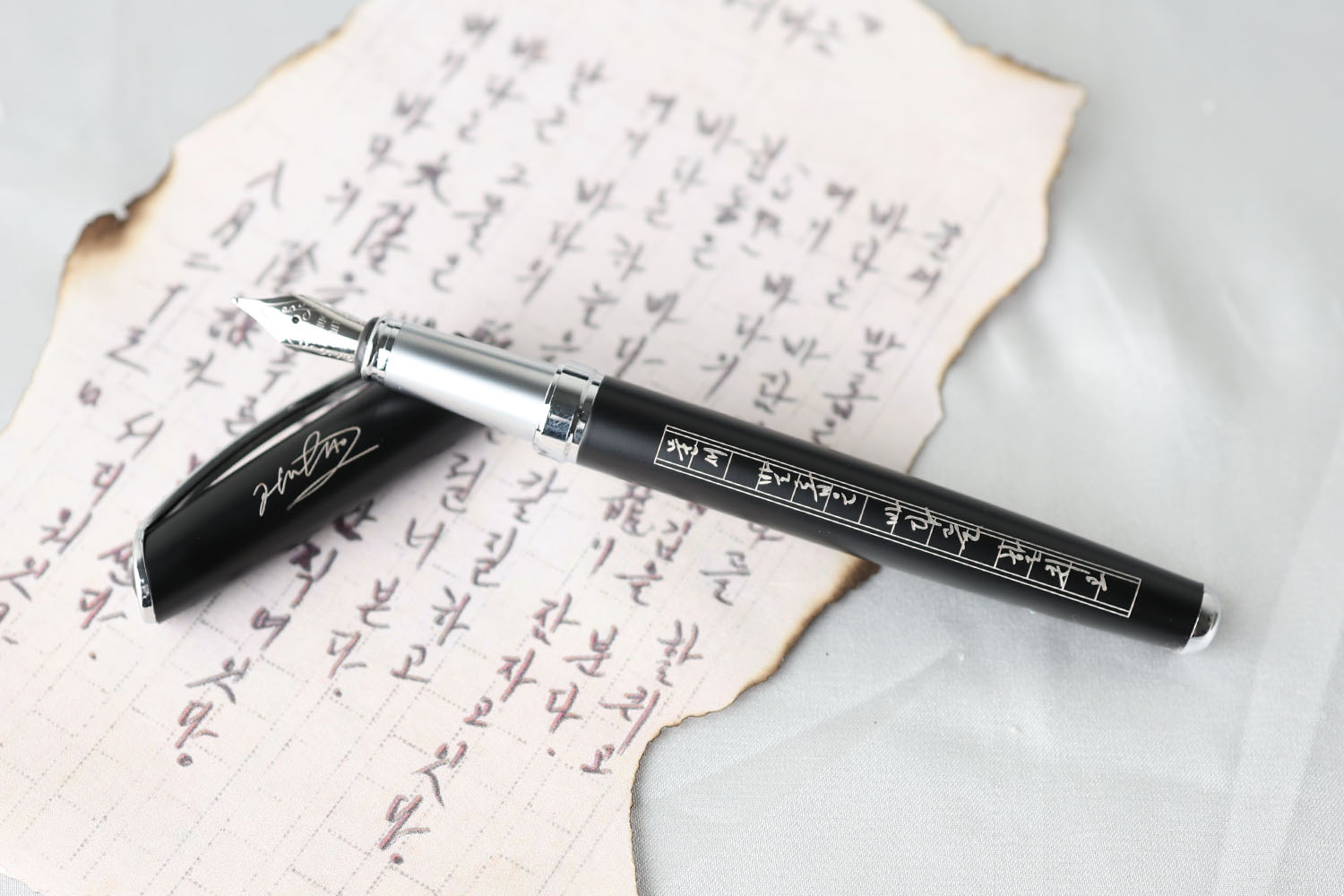 On the front and back of the fountain pen is the handwritten manuscript of poet Yun Dong-ju.Handwritten manuscript is engraved, and the handwritten signature is engraved on the cap.
