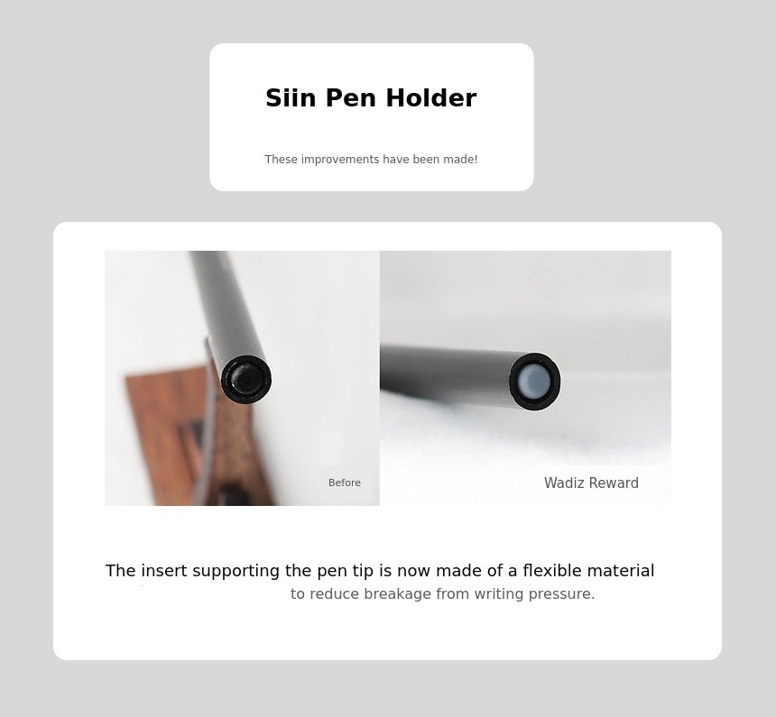 For the poet pen holder, you can apply various nibs according to your preference, and we have used a more flexible insert than previous products to reduce the risk of damage from writing pressure.