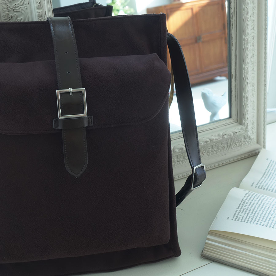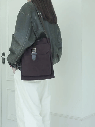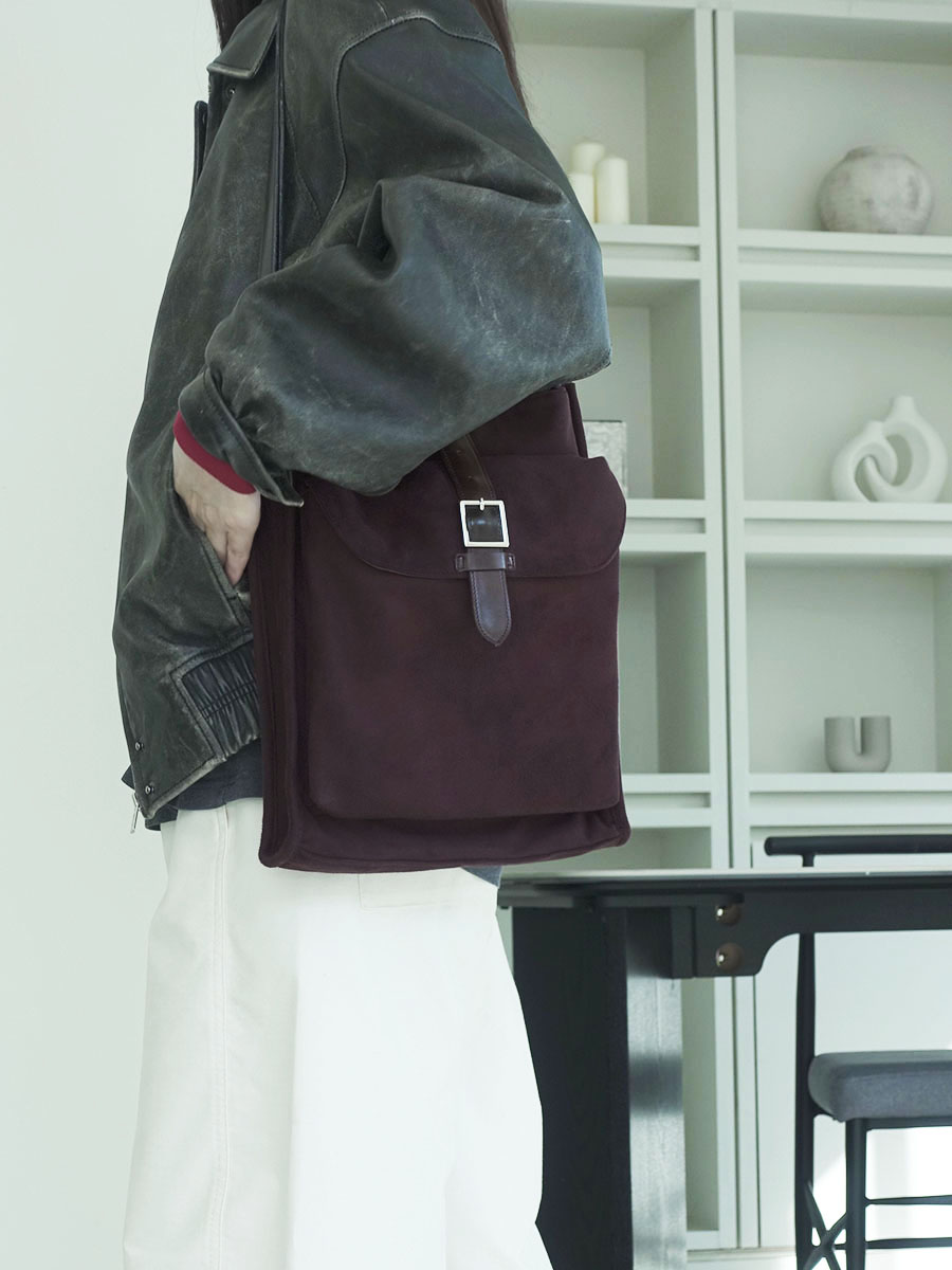 suede The material was chosen from a design perspective. Its unique texture enhances the bag's vintage charm. Although it has a gentle and soft texture, the inside is coated with PVC, providing basic water resistance for everyday use. The color is deep brown.