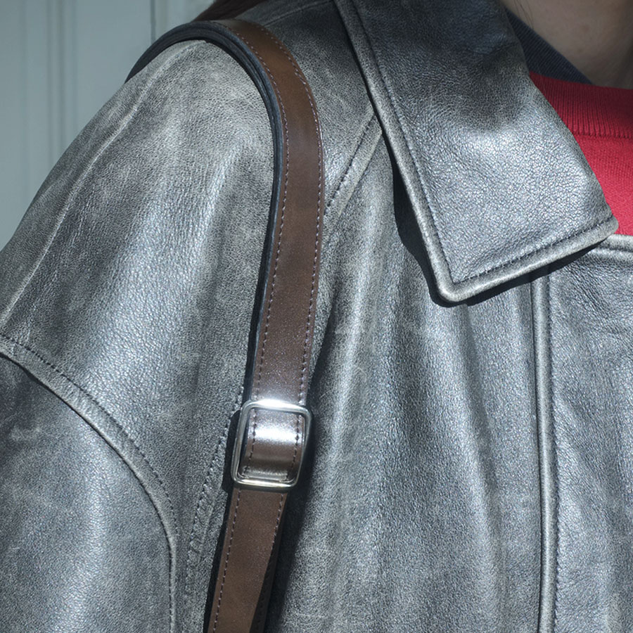 To stably support the weight of the bag, the strap material was chosen as natural cowhide leather.