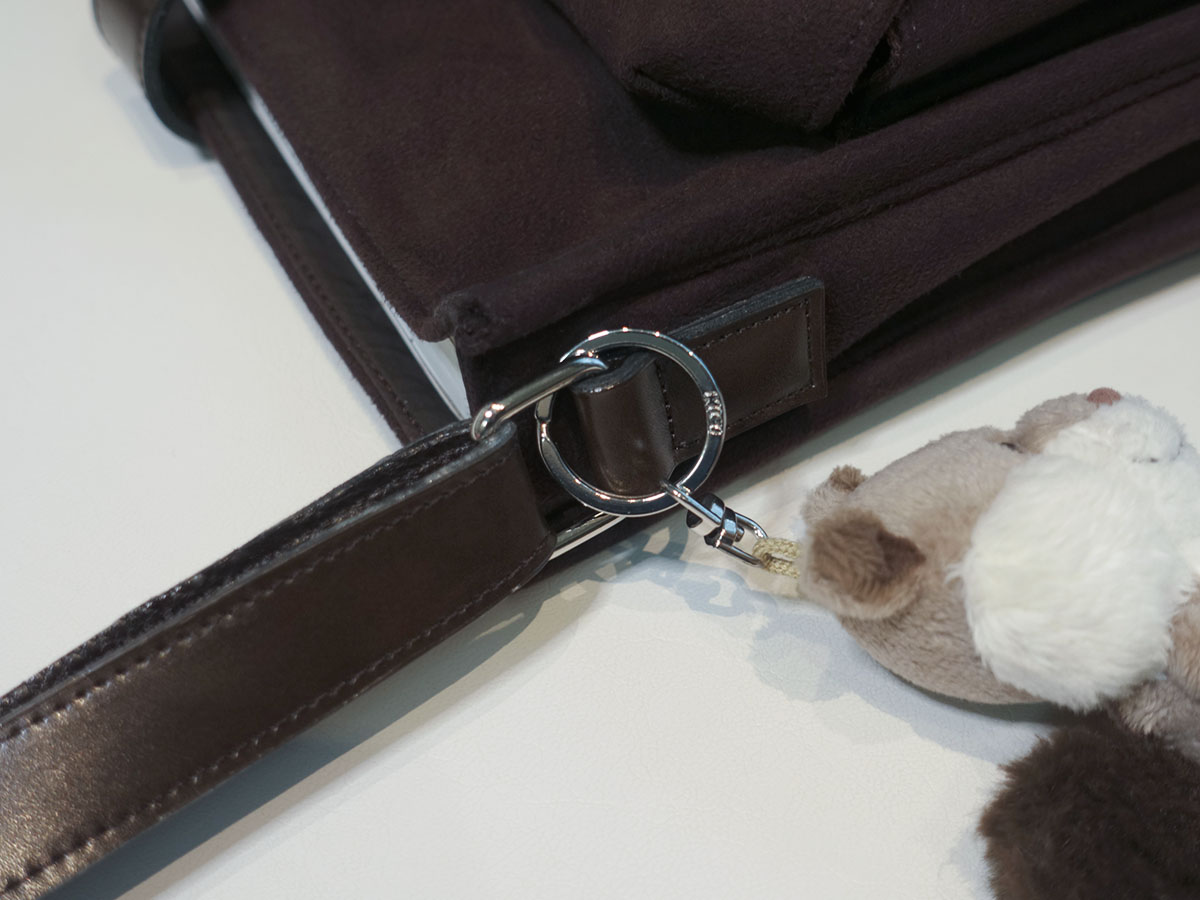 On the right side of the bag, the strap connection uses a metal ring. It makes it easy to adjust the shoulder strap size, adds durability, and is perfect for attaching a keyring to express your personality.