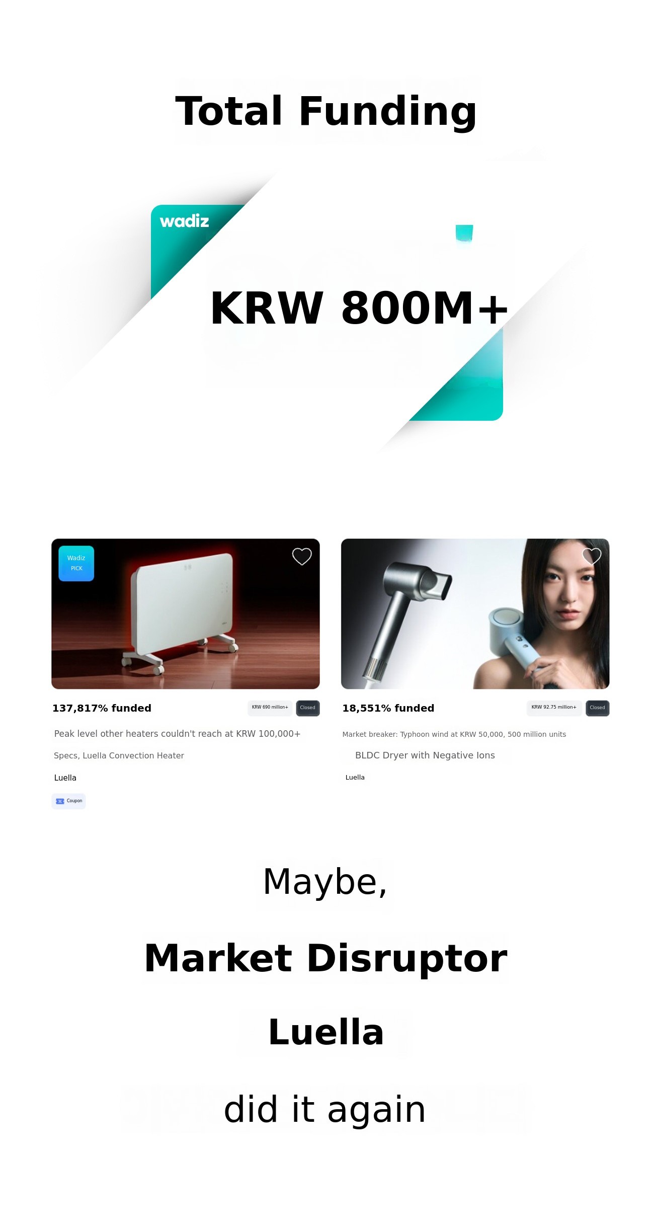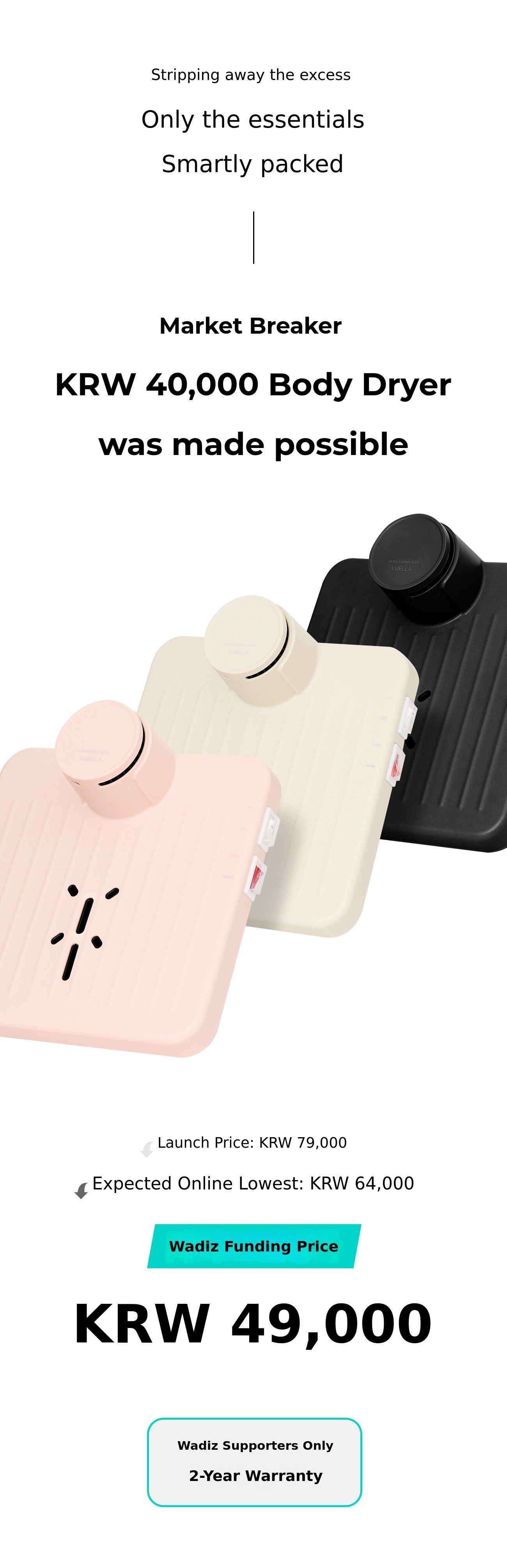 We want to start together with you, listen to your voices first, and reflect your feedback to develop an even more perfect product. Wadiz supporters are trendsetting, sincere, and thoughtful consumers.