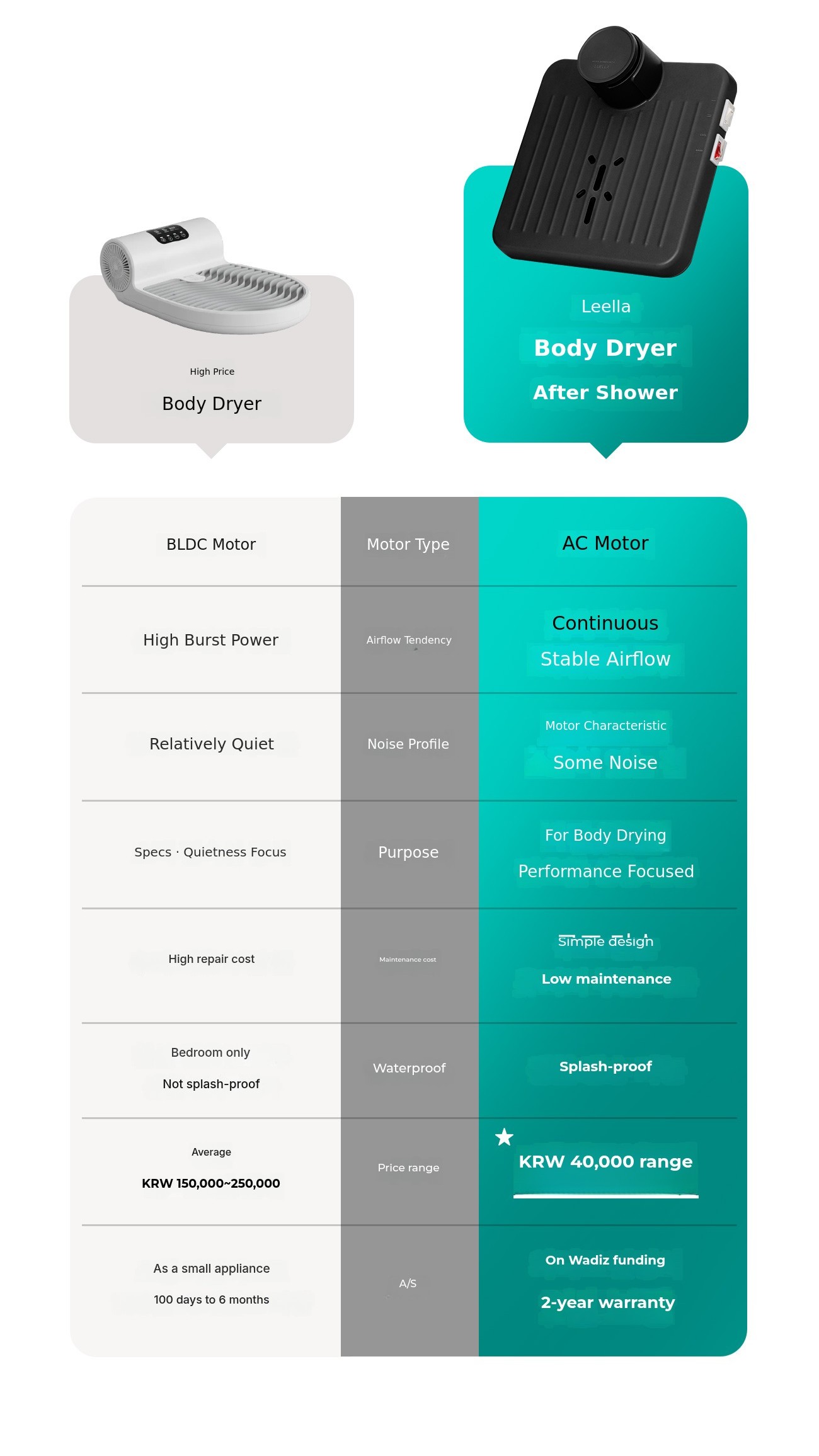 The Leella hair dryer introduced on Wadiz is offered at a more affordable price by reducing marketing and distribution costs. This is not simply to generate profit, but is the first step in sharing Leella's philosophy with the world.