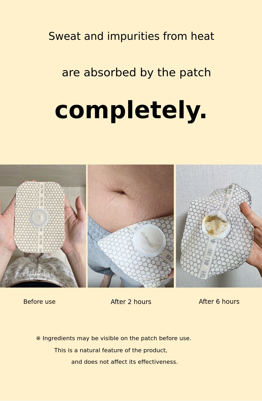 There may be differences depending on individual skin conditions, but in most cases, these marks will naturally fade over time. The fat-absorbing patch has completed a skin irritation test, but if you have sensitive skin, please moisten the area with water or lukewarm water and remove it slowly.