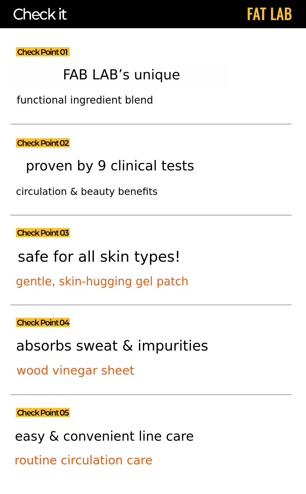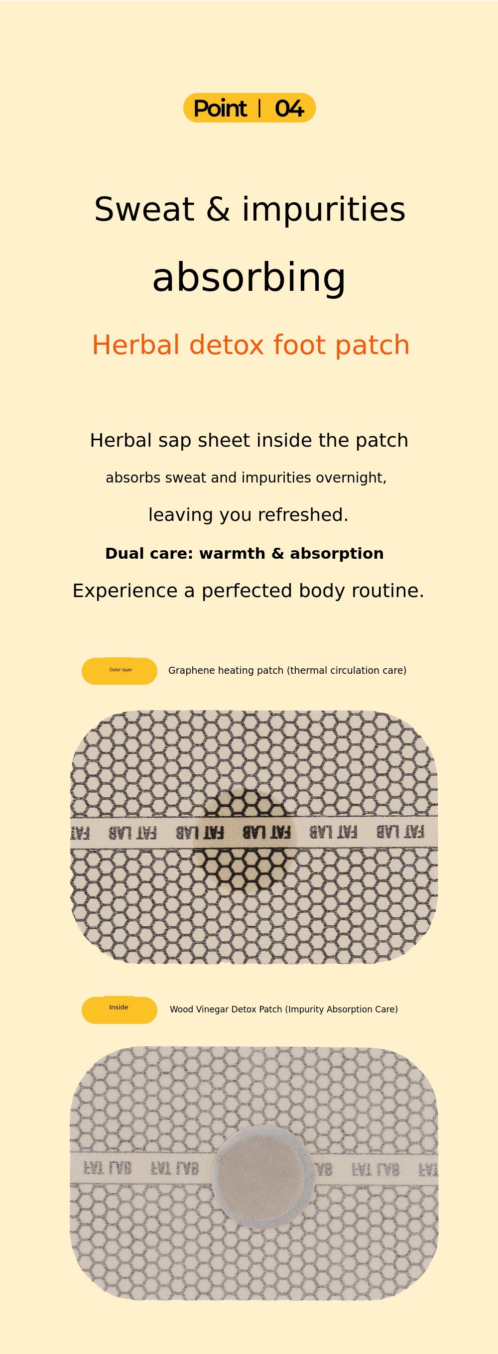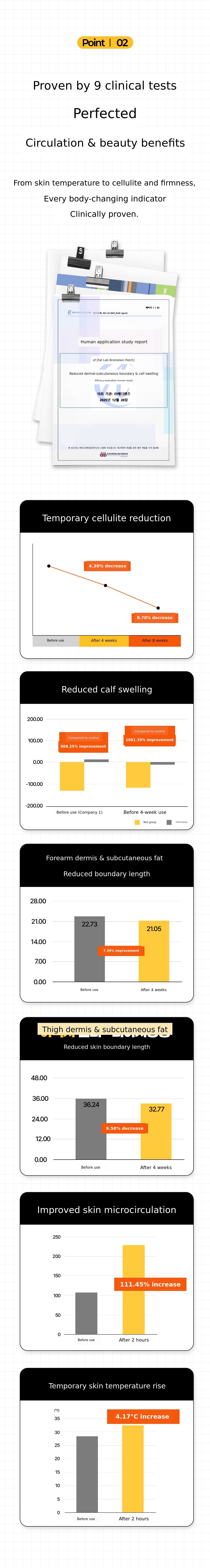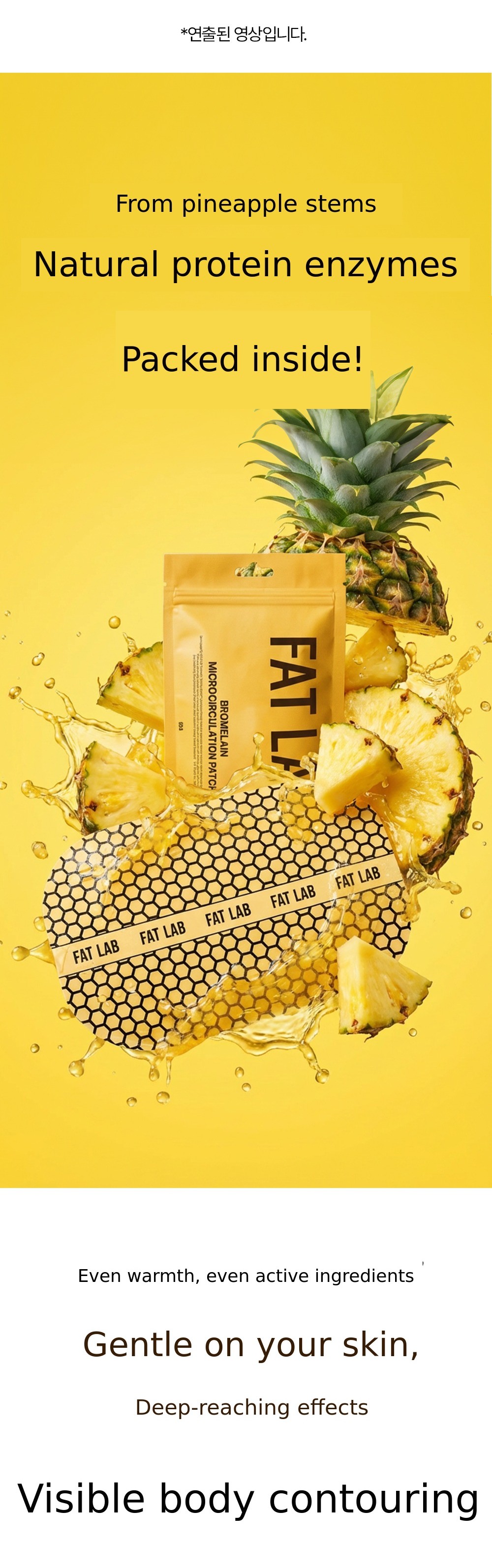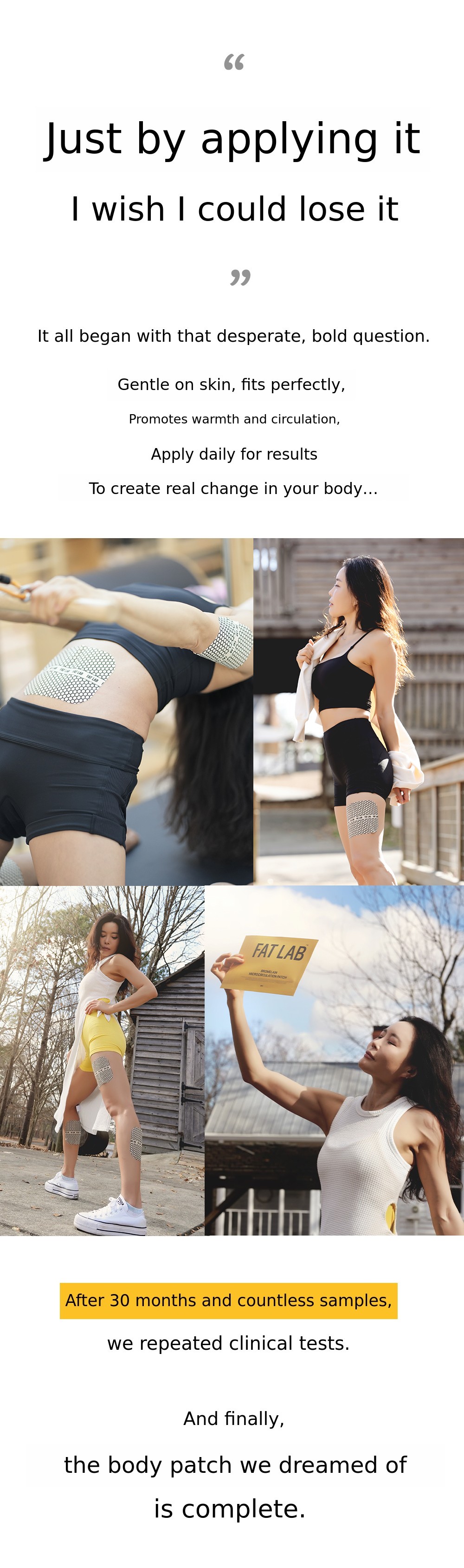 To turn this principle into a daily routine, we repeated sampling and clinical trials for 30 months, resulting in the creation of the Bromelain Thermal Circulation Patch and the Fat-Absorbing Patch.
