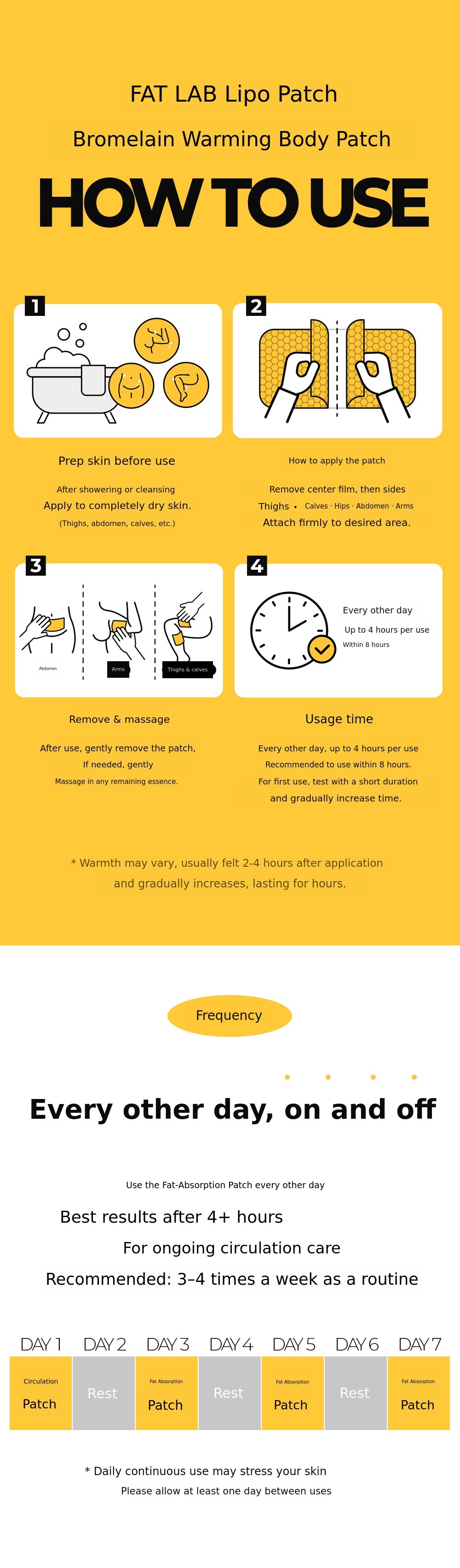 4. Sensation of heat or irritation may vary by individual. The perceived level of warmth or irritation may differ depending on skin condition.