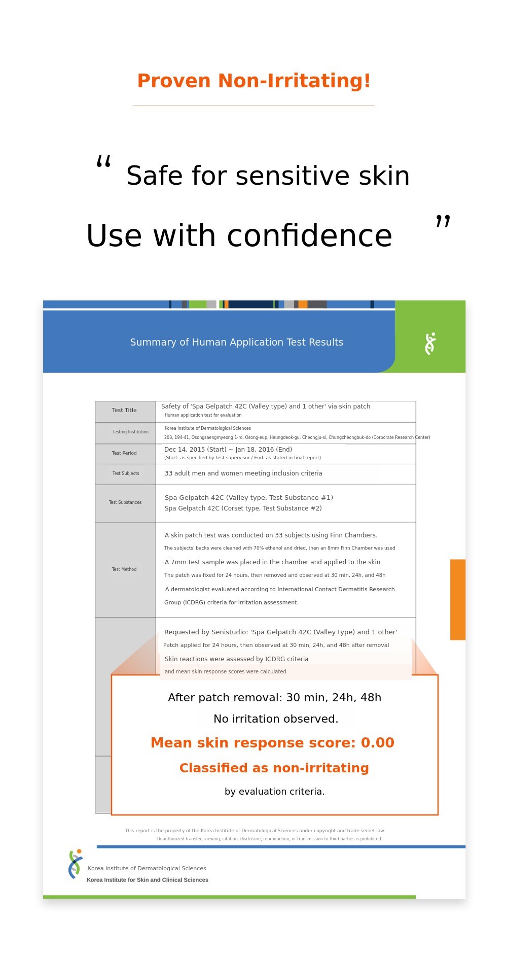 * Excerpt from human application test report / Single use / Results may vary by individual.