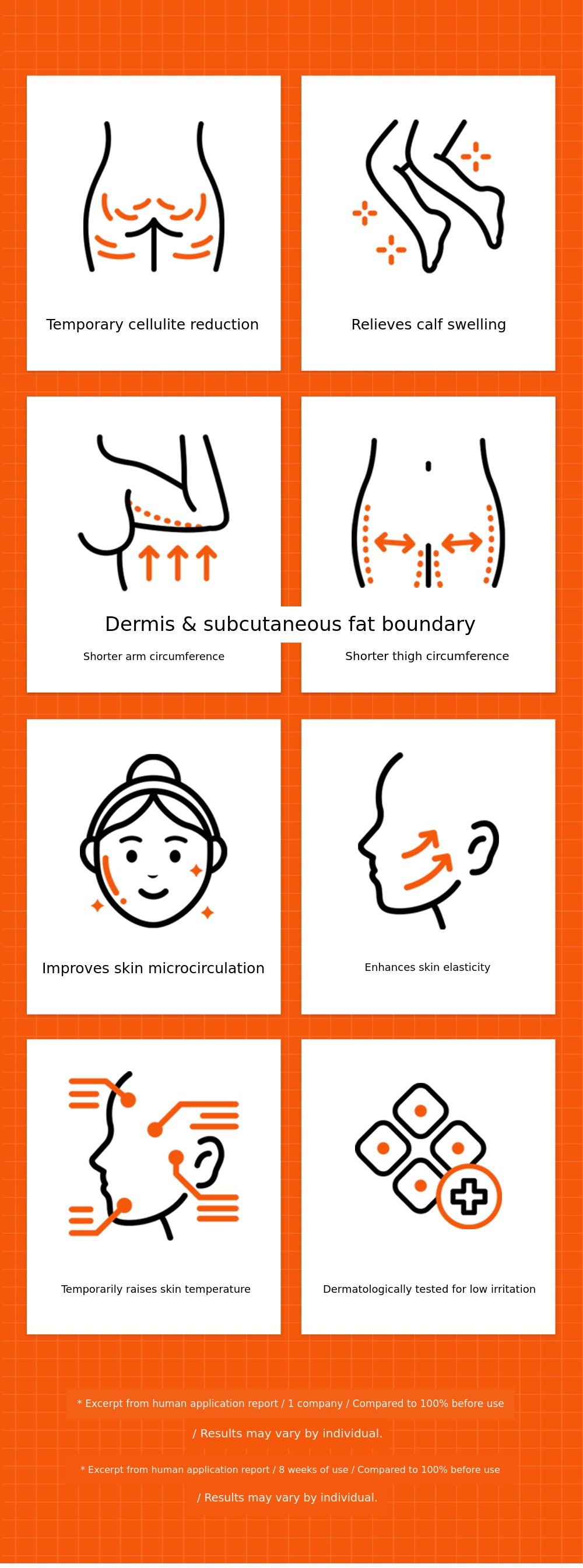 * Excerpt from human application test report / 3-4 weeks of use / Compared to 100% before use / Results may vary by individual.