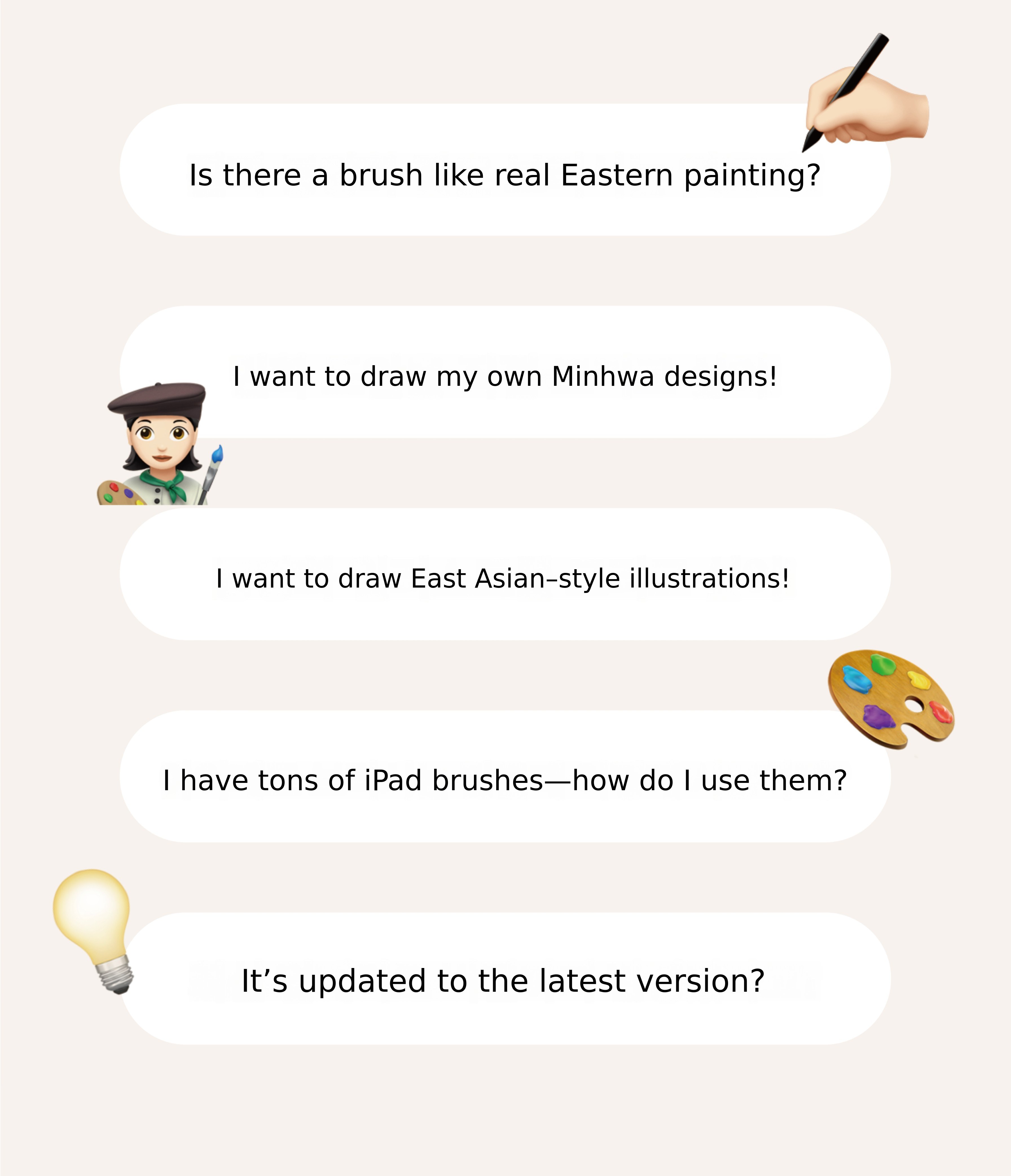 which led me to research and create East Asian painting brushes for Procreate myself.