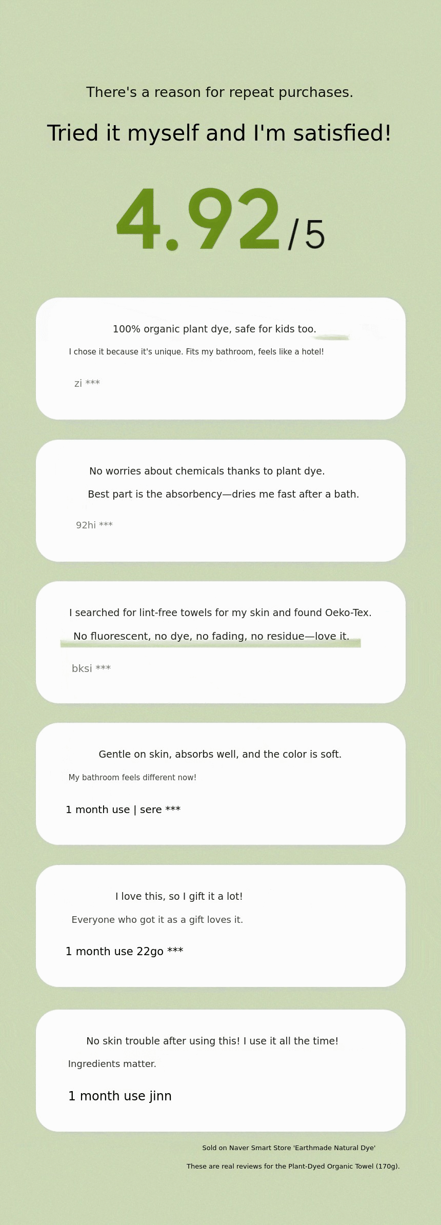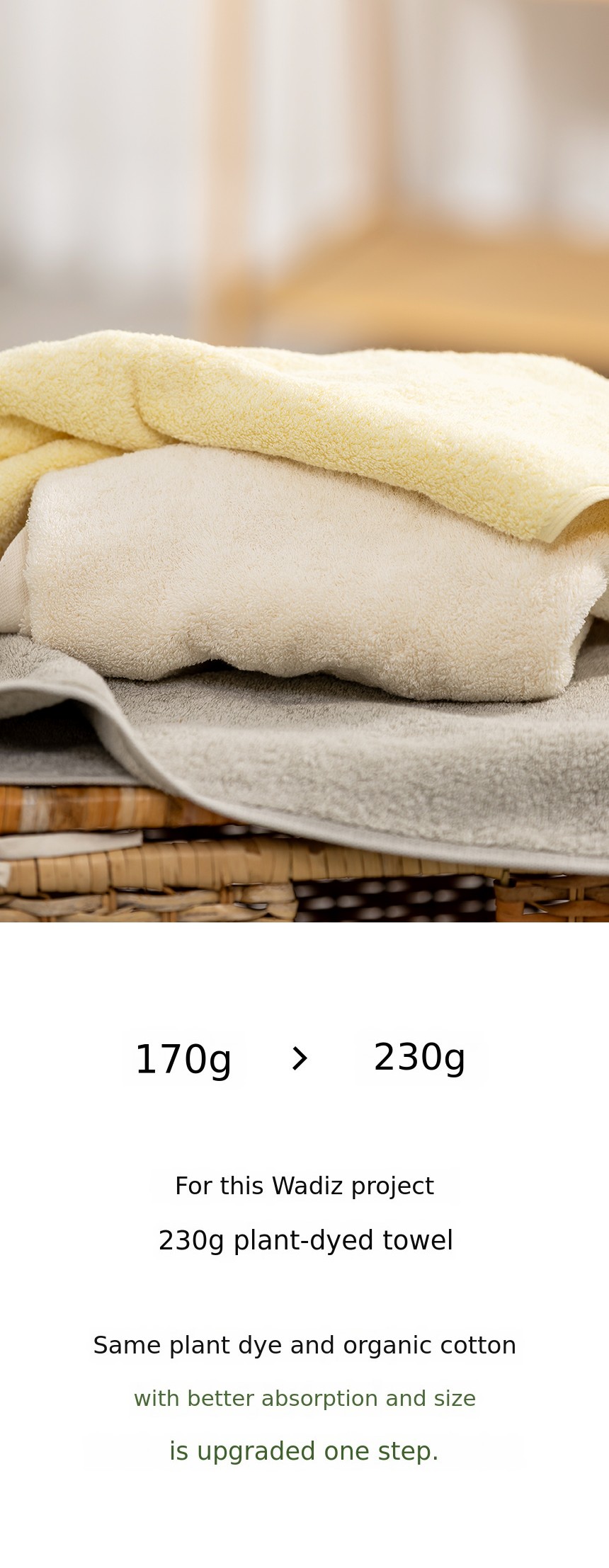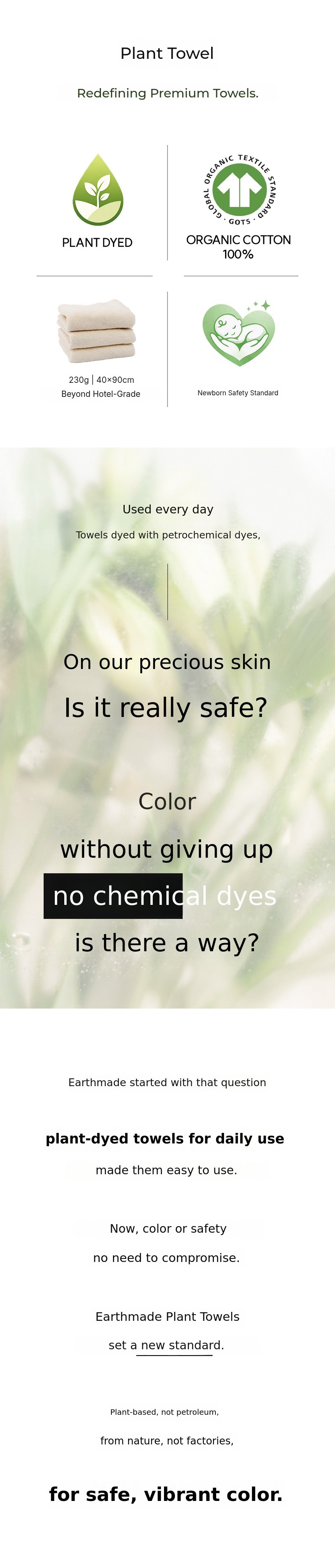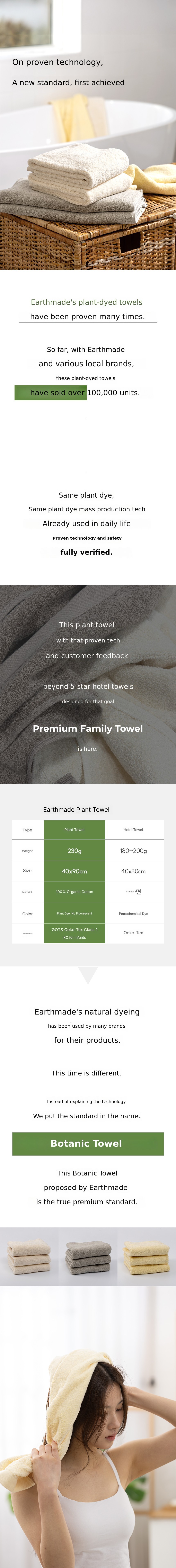 1. 🌿 Premium Plant-Dyed Organic Towel - 230g heavyweight towel dyed naturally with plant dyes, no petrochemical dyes 2. 🛡️ Newborn Safety Certified Product - Certified by GOTS, OEKO-TEX, and KC for safe use on baby skin 3. ✨ Exclusive Reasonable Price on Wadiz - First introduction of 230g premium plant towel on Wadiz platform