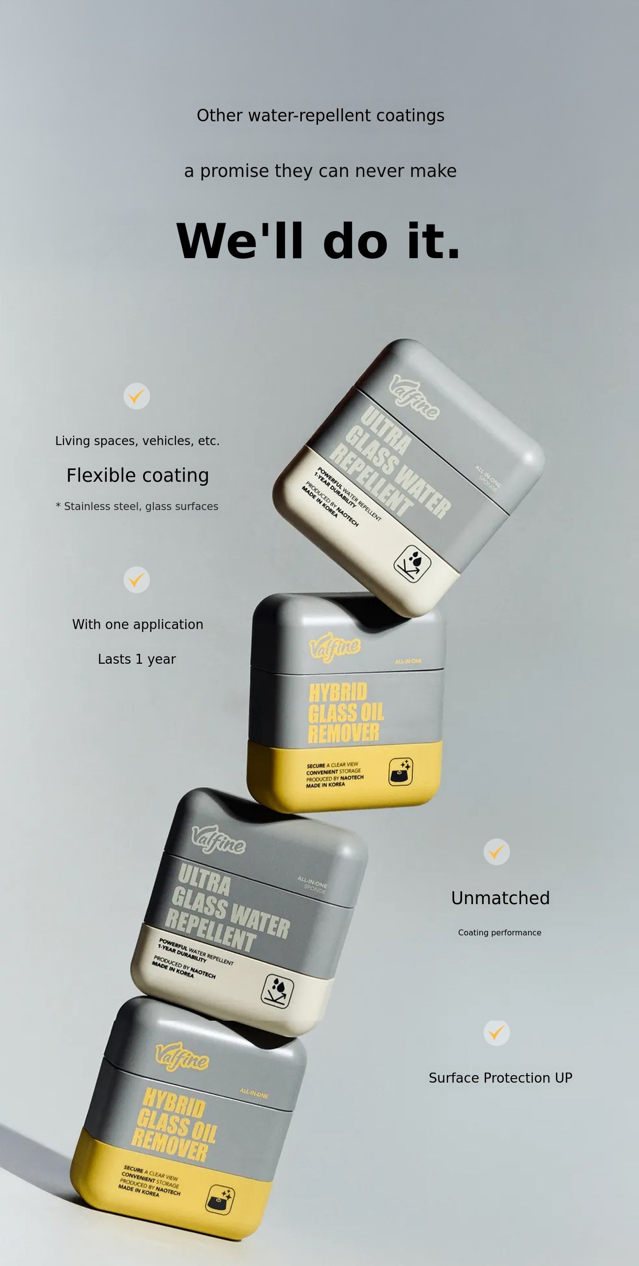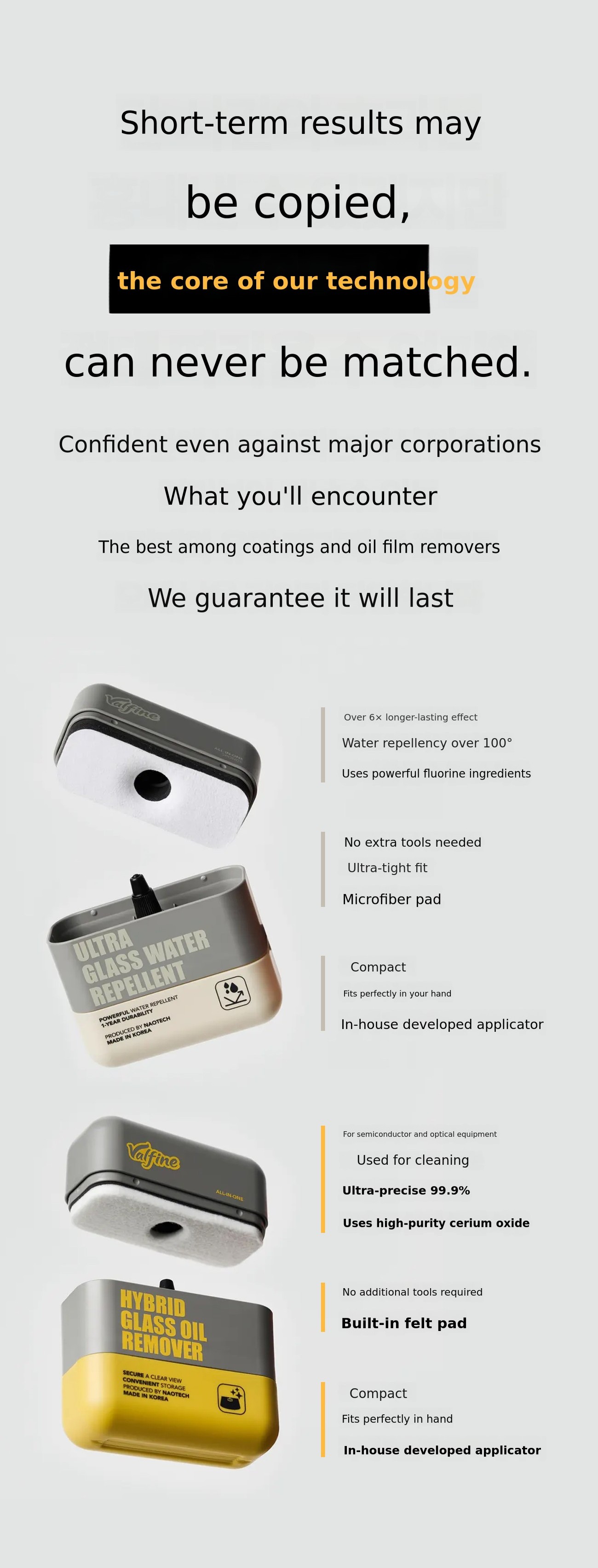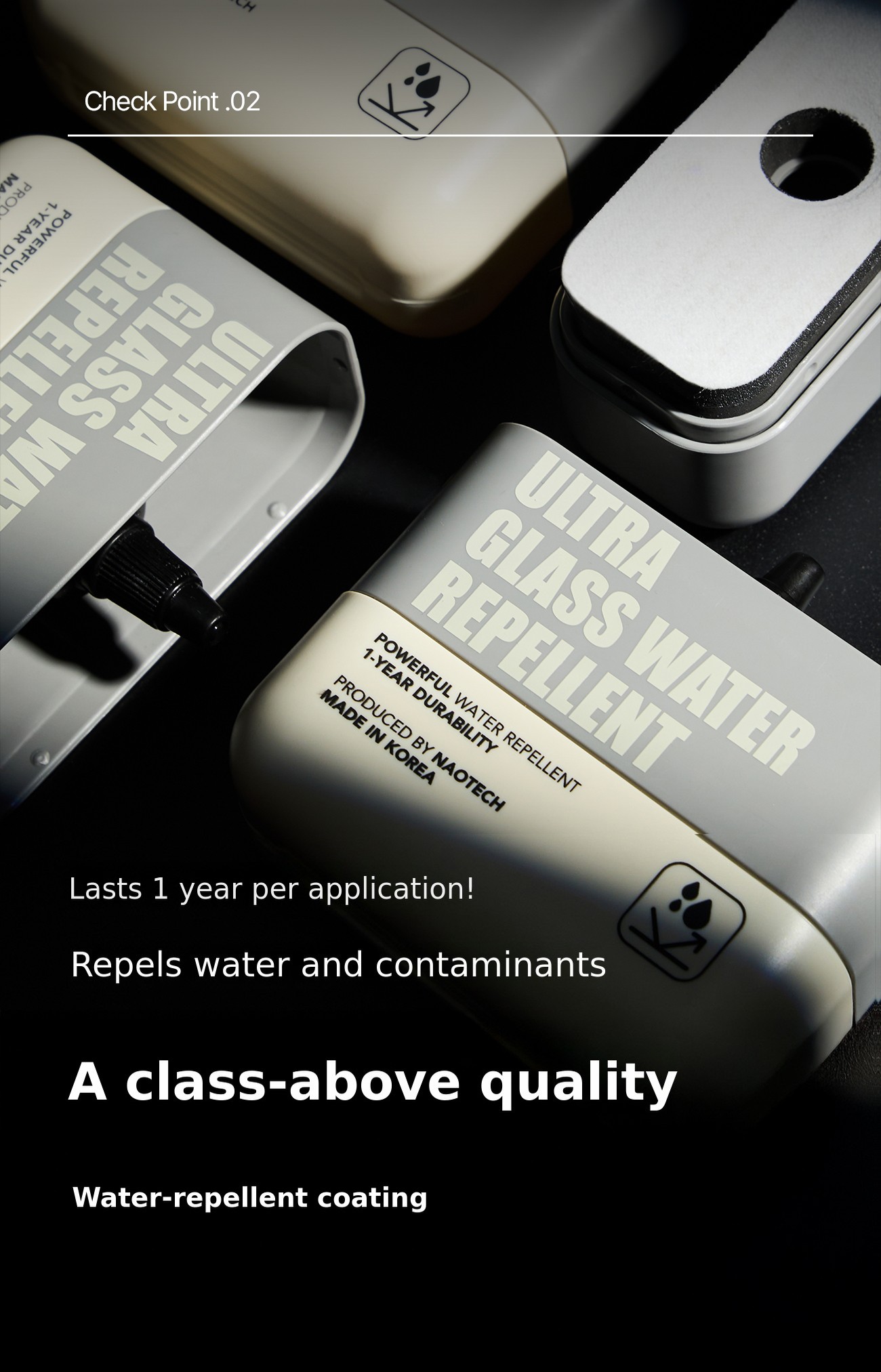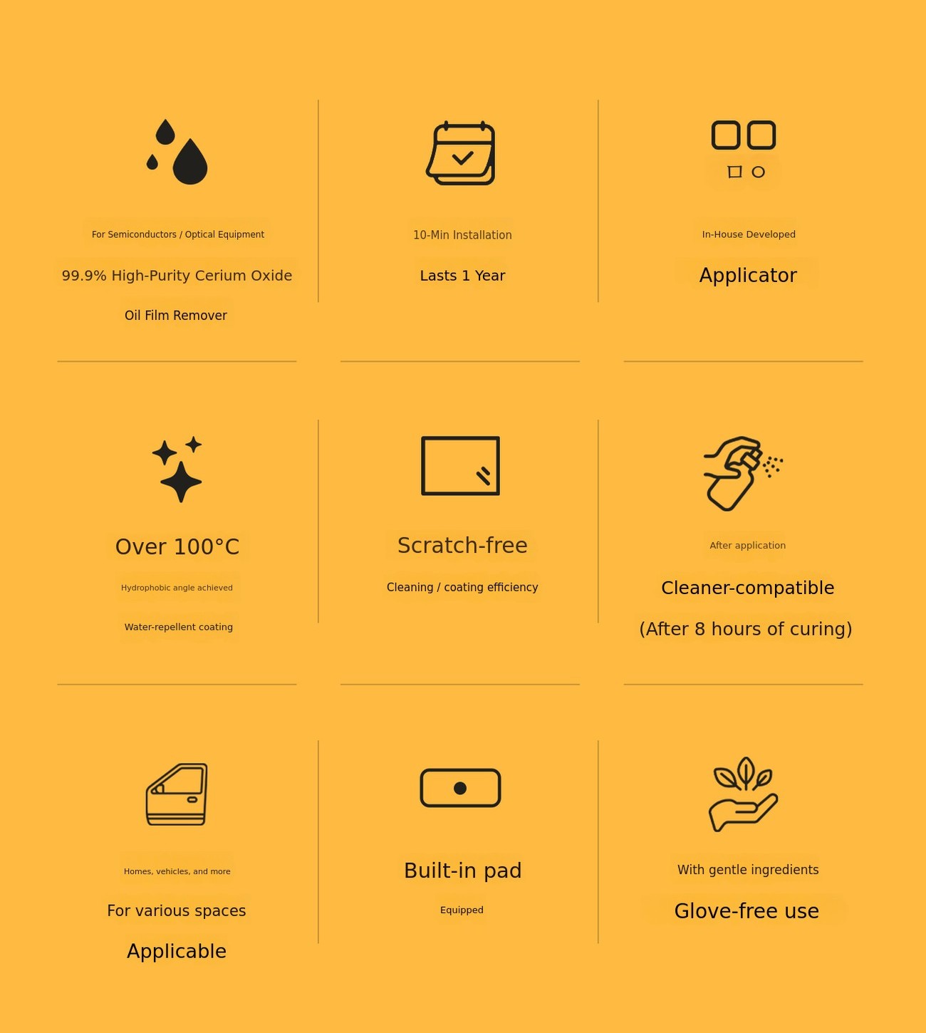 Twenty-five years of know-how, now presented under our own brand. Glass coating agents and glass cleaners made with premium raw materials used in semiconductor processes. We wanted to break the prejudice that "this is just how glass care is."