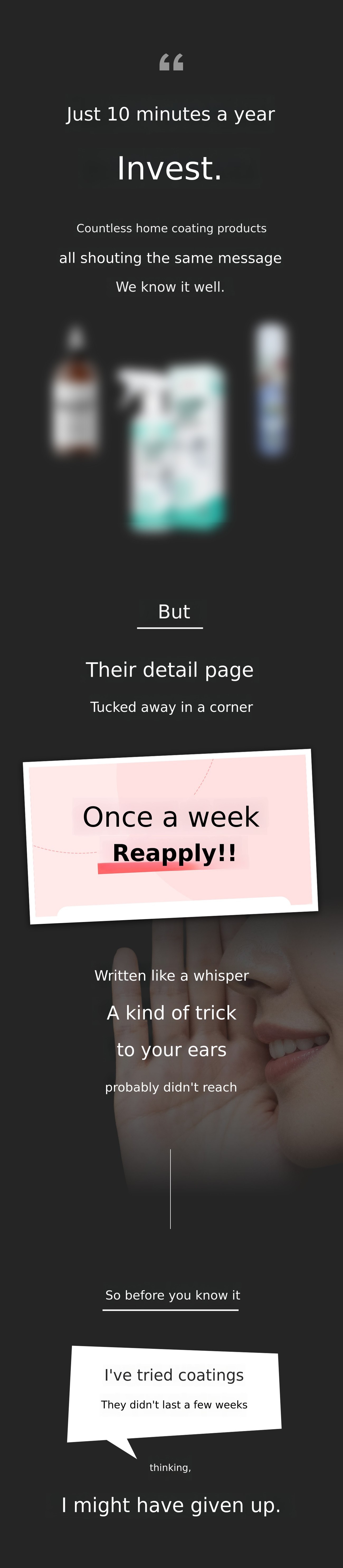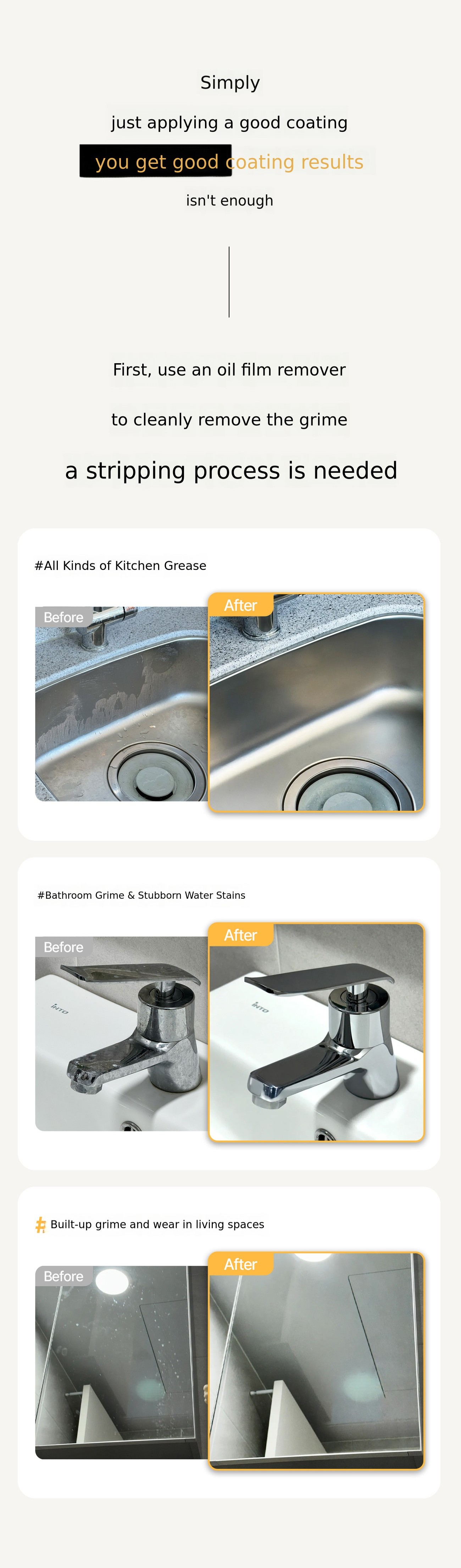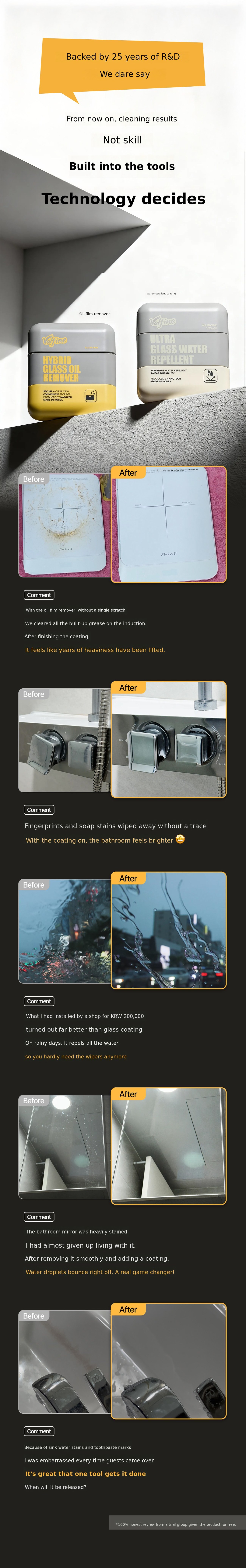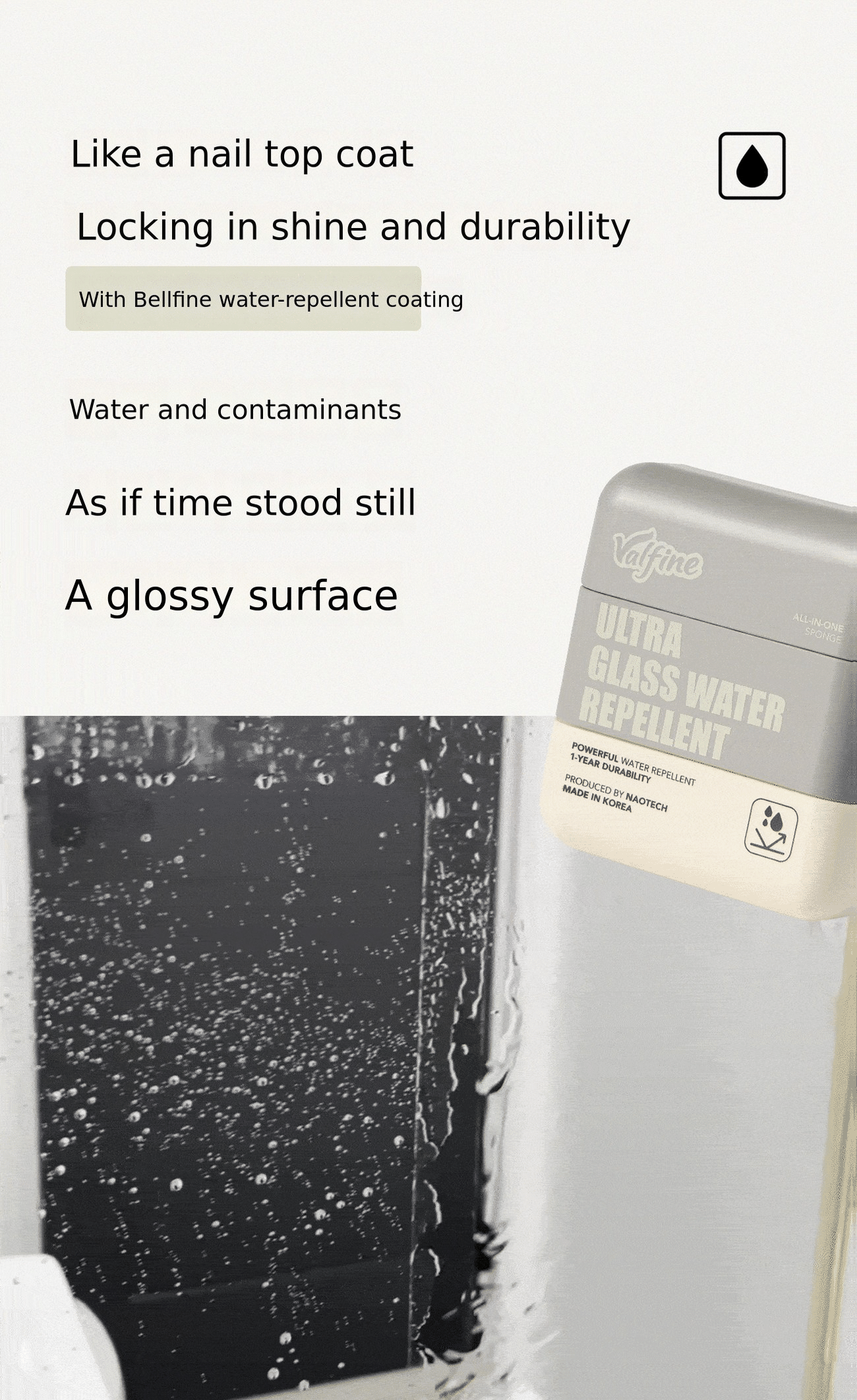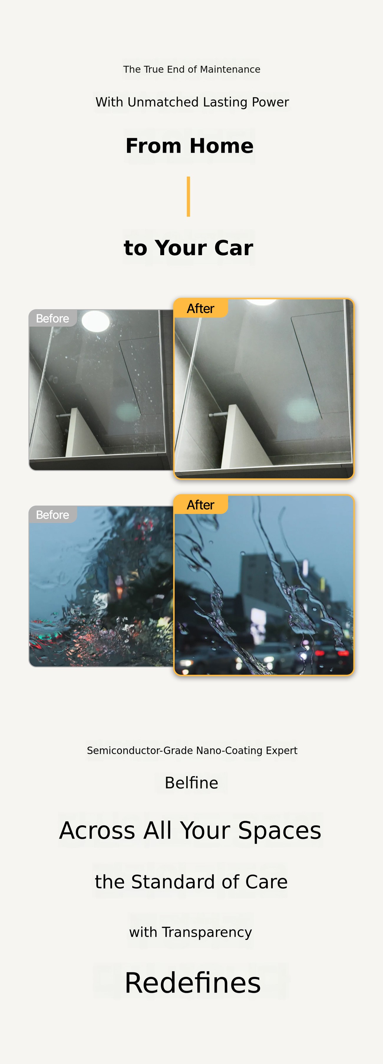 Have you been stressed by glass that streaks no matter how hard you wipe it and gets dirty again so quickly? Belpine is different. One rinse, one coating, and youโre done. We will save your valuable time and money. We have no interest in copying othersโ products. With 25 years of technology, honestly, to the living market, a truly high-quality productWe will leave a precedent.