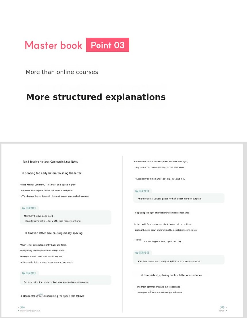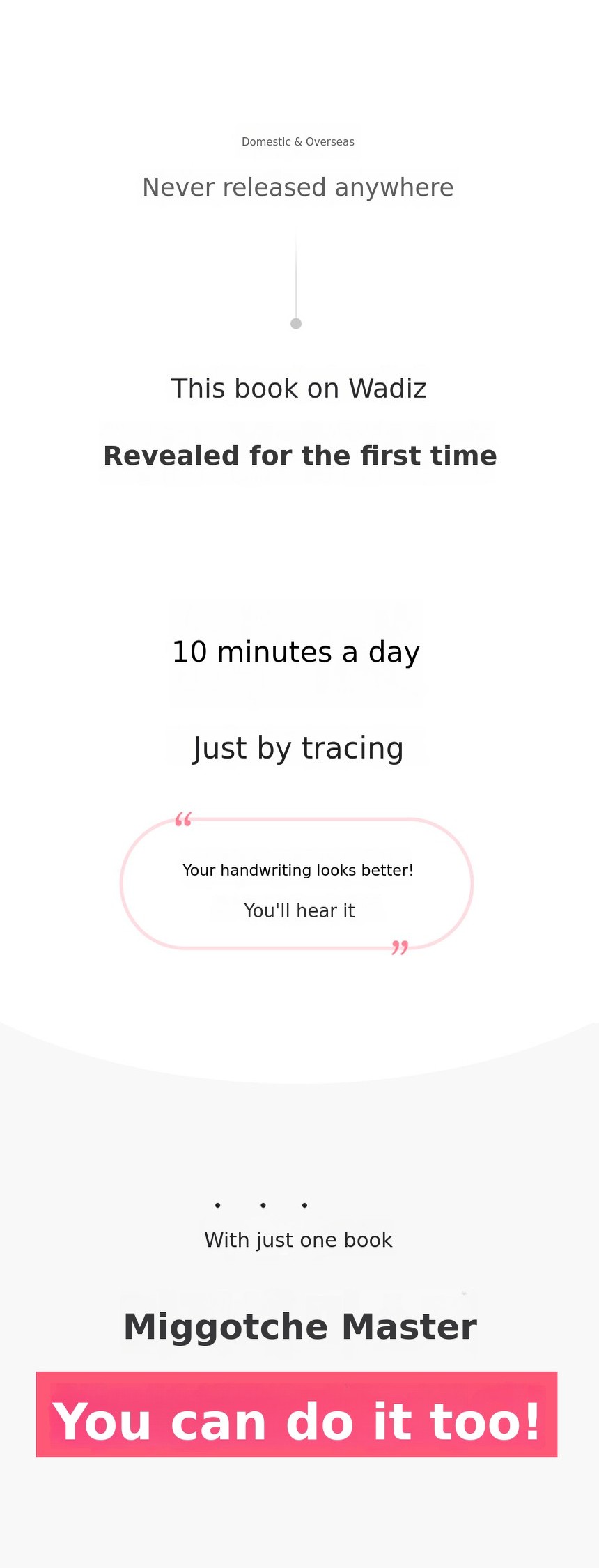 A. Yes, absolutely! This book is not just a simple handwriting workbook. It’s a “complete lecture book” that fully captures five years of handwriting teaching know-how. Because it explains things in more detail than videos, you can actually learn Miggotche more accurately. You can repeat lessons at your own pace, so one book is more than enough.