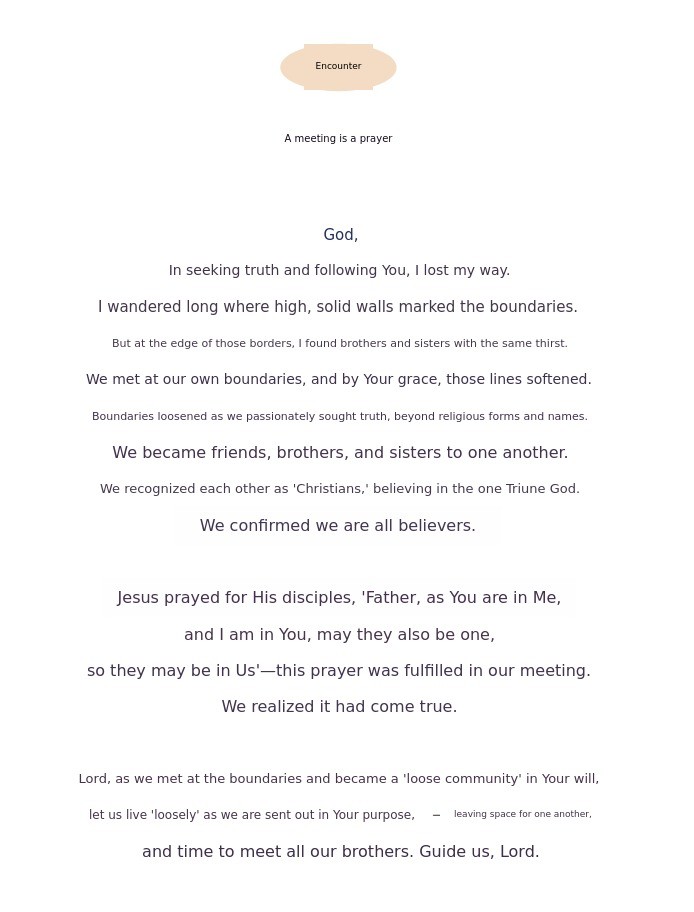 - We met as companions on the same path, beyond the red bricks of the church. The small gathering outside the church, 'Loose;00', which began in 2023, shared warm questions of daily life instead of the right answers of faith. We simply discussed and pondered together how a young person's faith wavers in daily life, why companions are needed, and what courage for brotherhood should be.