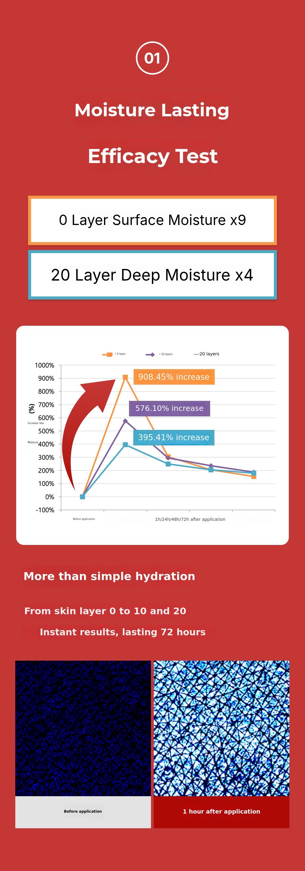 It provides instant and long-lasting moisture from the surface to the deep layers of the skin.