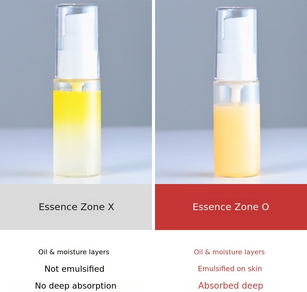 A. This phenomenon occurs due to differences in separation speed during repeated emulsification and separation, which is a characteristic of the product. If you shake it before use, it will emulsify properly and there is no problem with the product, so please use it as usual.