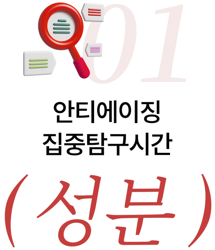 From now on, we will thoroughly explain the ingredients and formulation efficacy tailored for anti-aging,