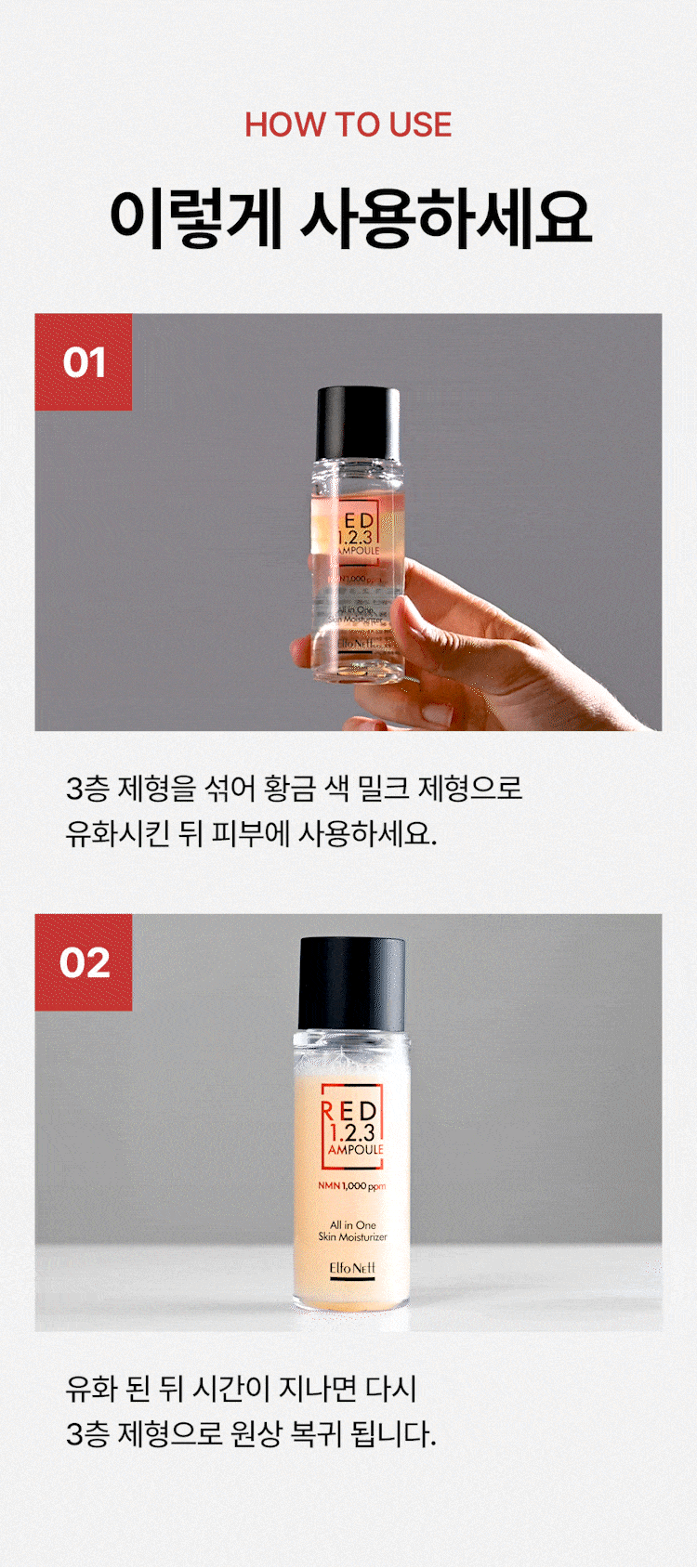 After cleansing, mix and apply the NMN Red Ampoule.