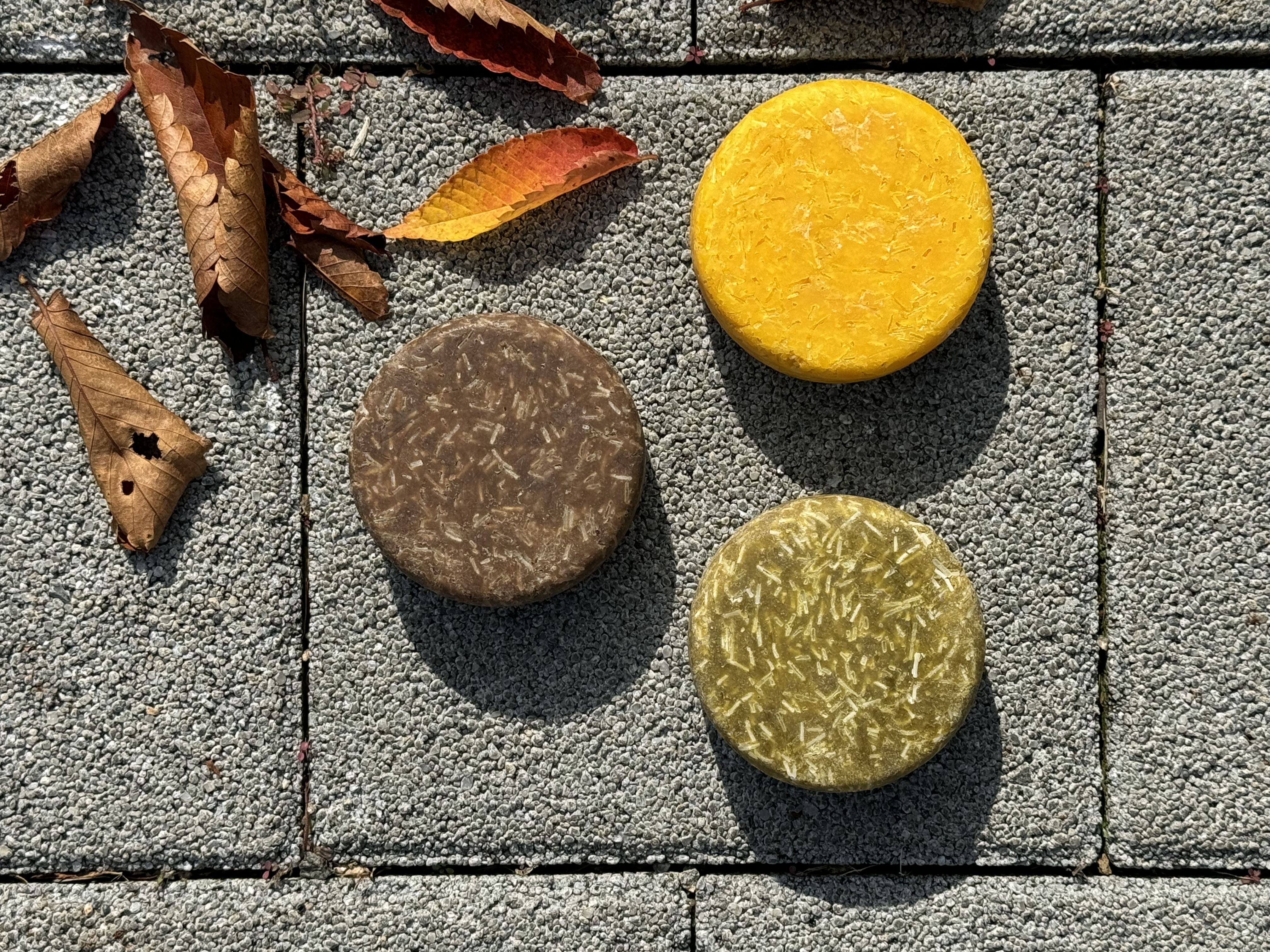 - Depending on scalp type, we made three types: dry (Amber Granule Shampoo Bar), combination (Citrine Granule Shampoo Bar), and oily (Emerald Granule Shampoo Bar).