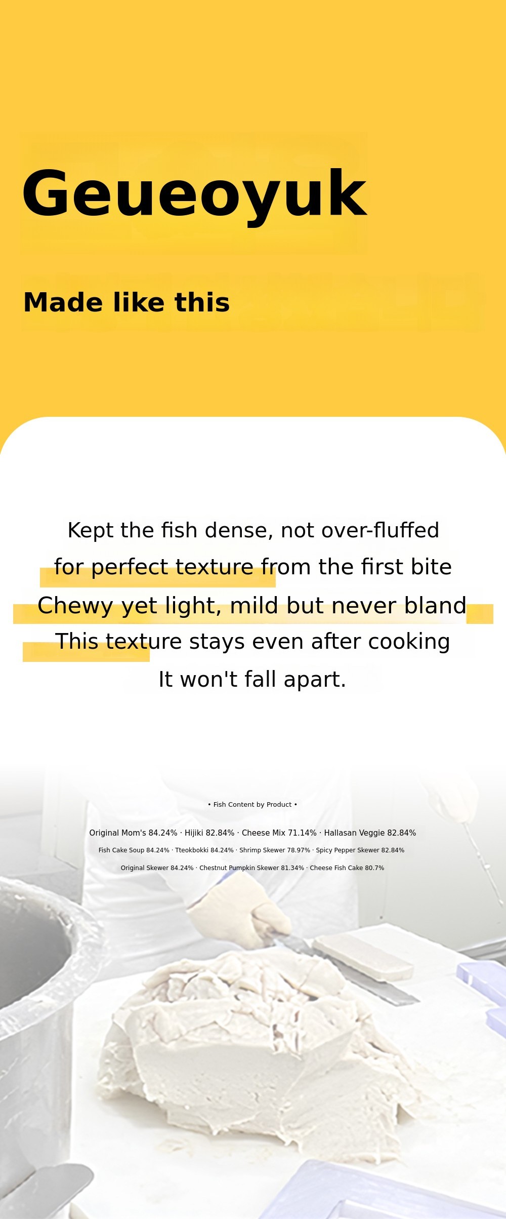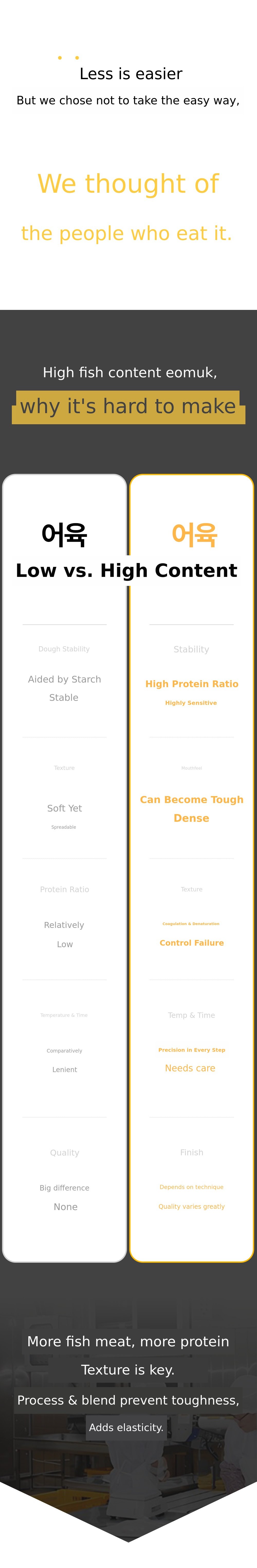 The taste and quality of fish cake are determined by the 'process'.