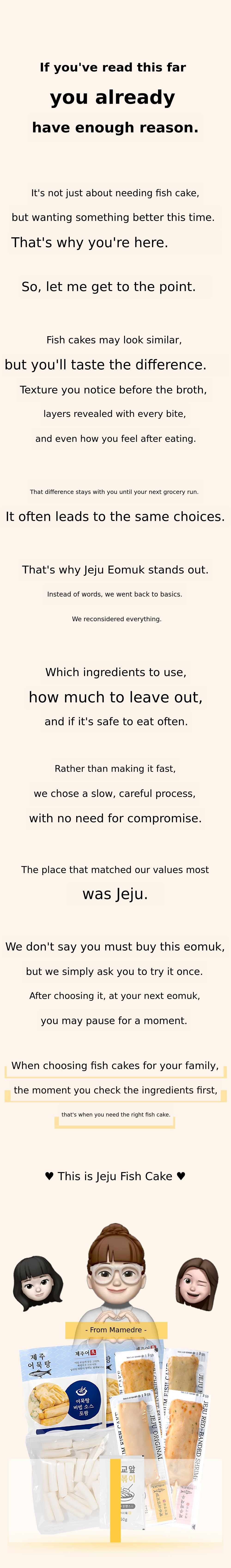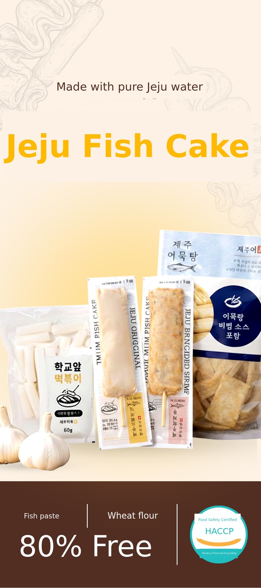 Introducing Jeju fish cake made only with fish meat.