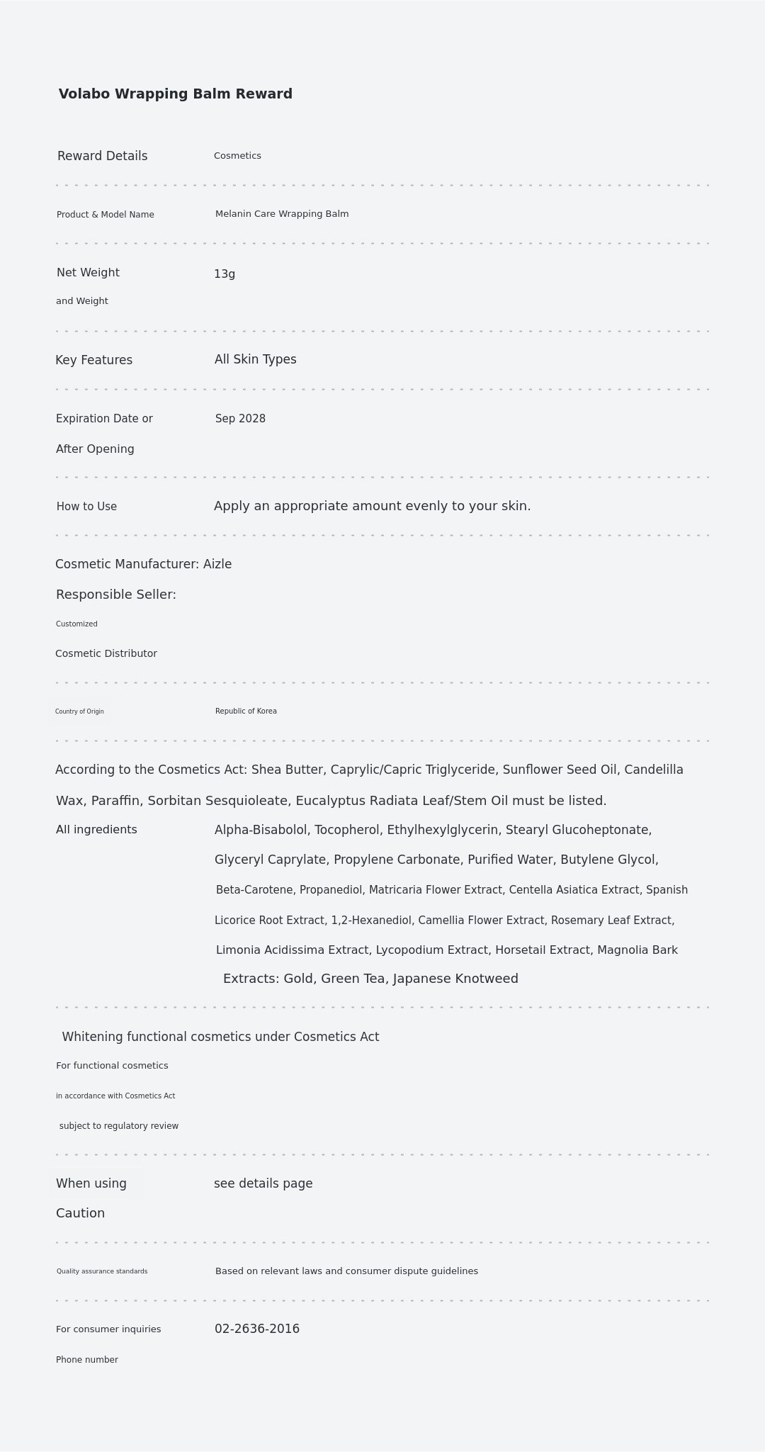 Melanin Wrapping BalmOffers skincare benefits as well as whitening functionality and melanin-blocking ingredients as well,