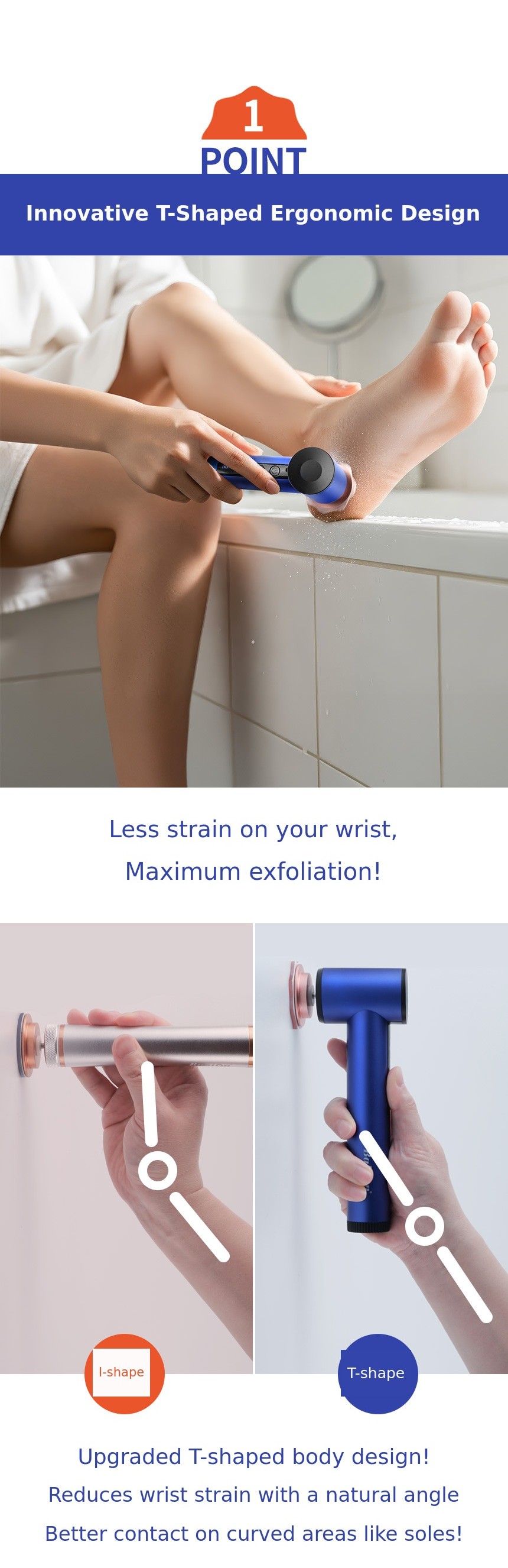 1. 🦶 Electric T-shaped Callus Remover - Ergonomic T-shape design reduces wrist strain for easy use 2. 💎 Durable Crystal Pads - Gentle, uniform callus removal with skin-friendly crystal pads 3. 🎁 Lifetime Home Care - One-time purchase saves salon costs, enables easy home foot care