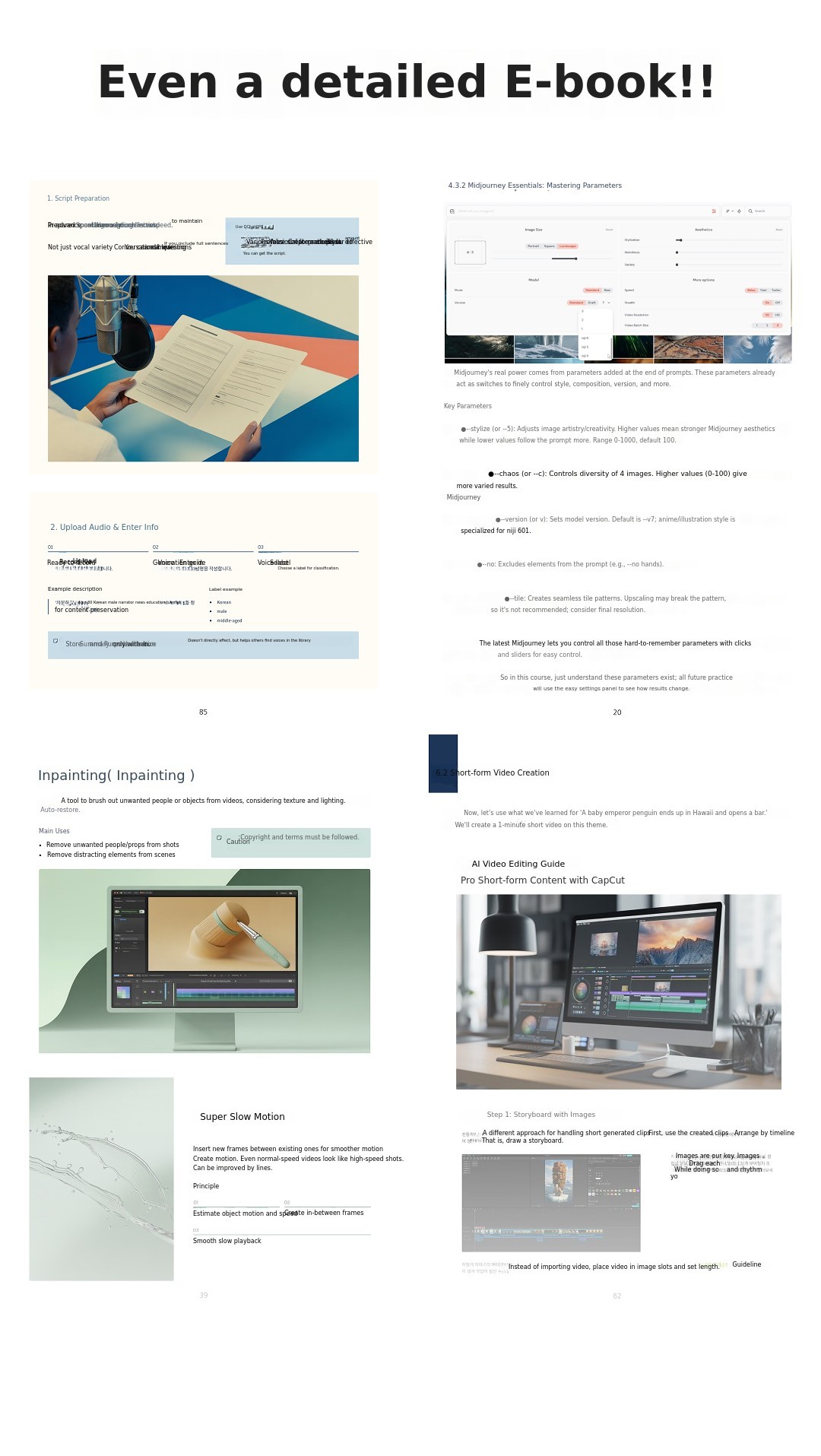 Let us be honest. If you master practical skills through the video lectures and absorb all the details with the E-Book,your AI-powered video production will no longer remain at a ‘beginner’ level.