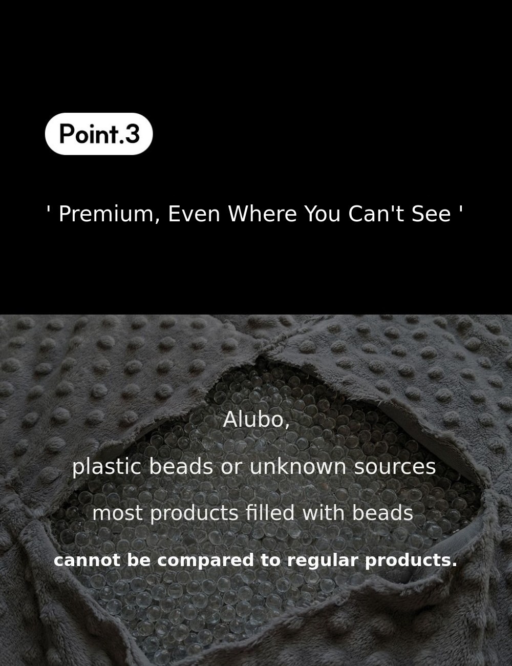 △Plastic beads and pocket-type sewing method used in most heavy blankets on the market