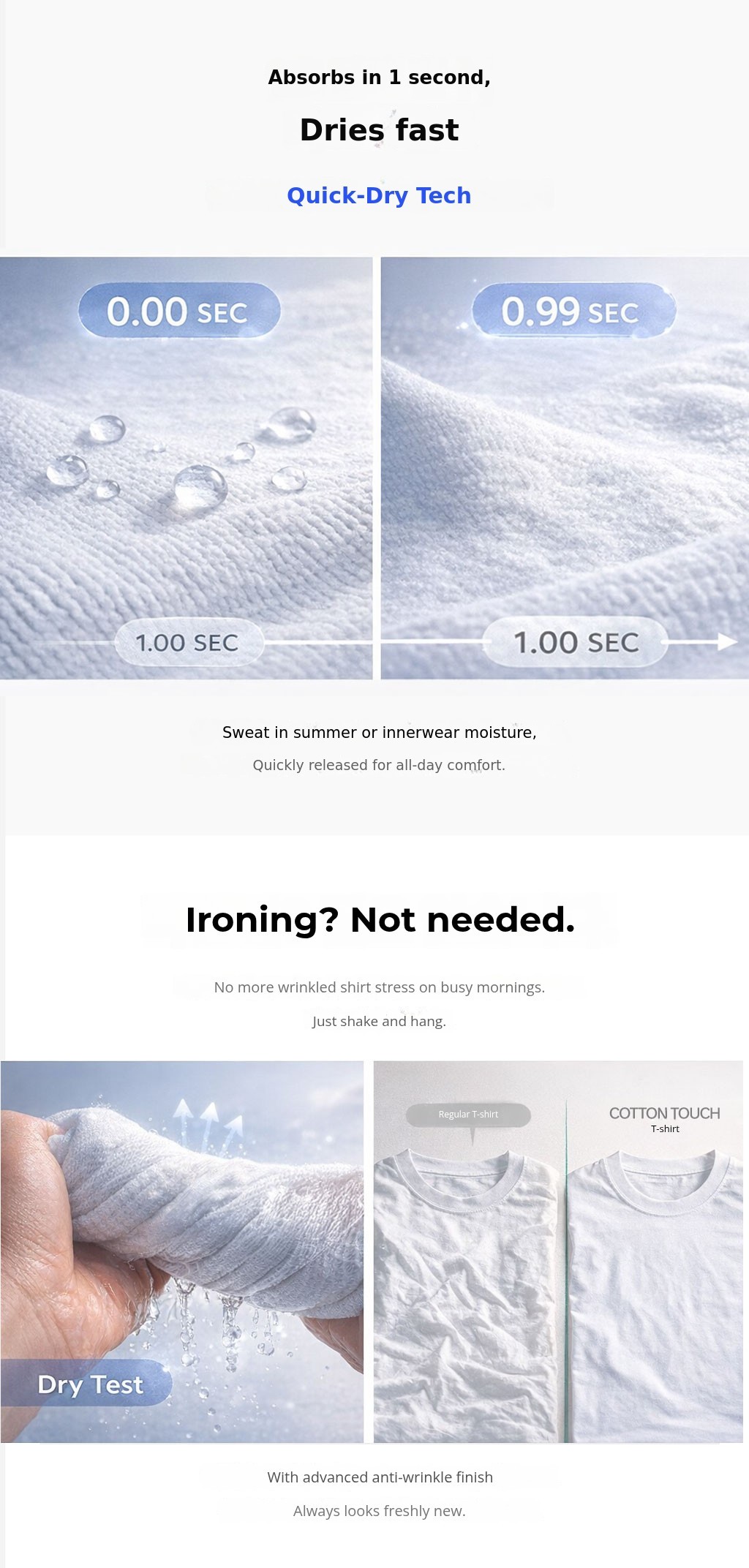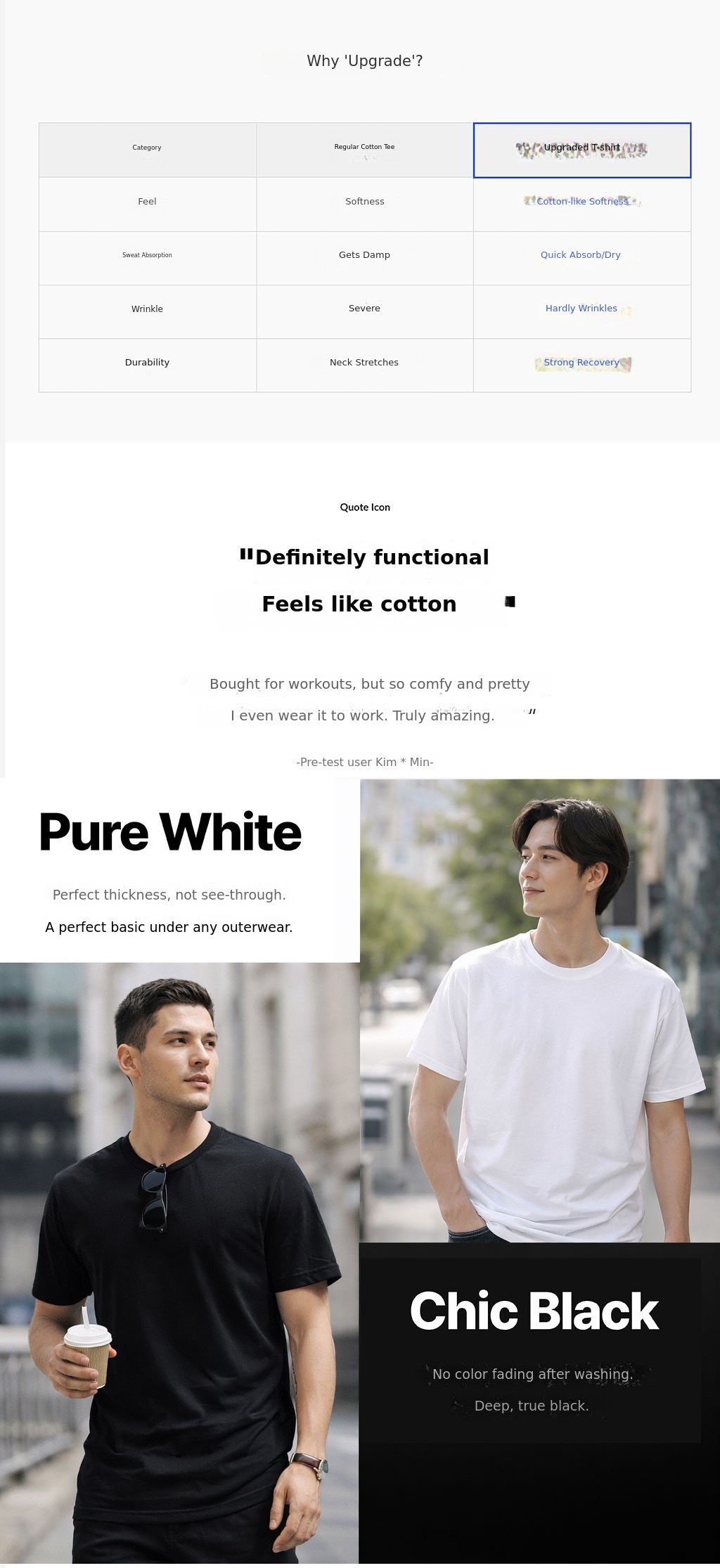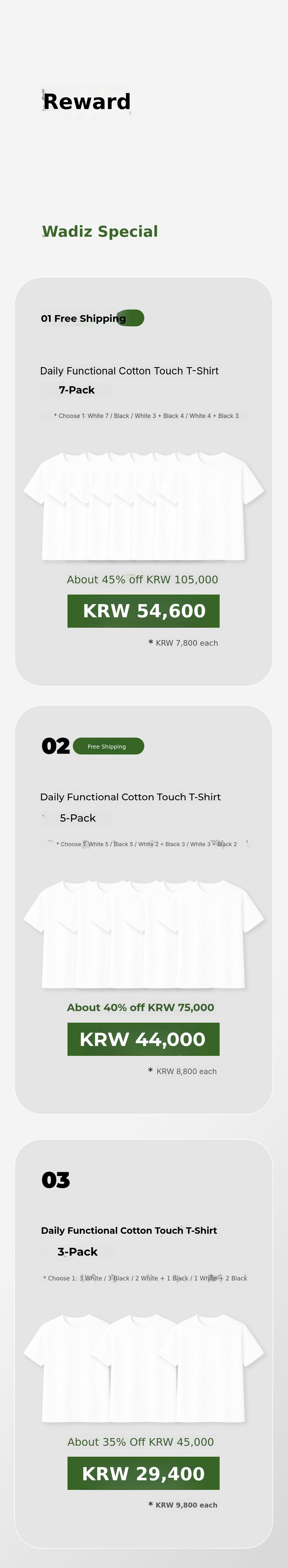 1. ๐ Basic Color Functional T-Shirts - Focus on white and black colors with maintained high quality 2. โก Quick Dry and Moisture-Wicking - Absorbs sweat in 1 second and dries fast for comfort 3. ๐ 72-Hour Limited Event Benefits - Buy 7 or more, get 1 free plus early bird gifts